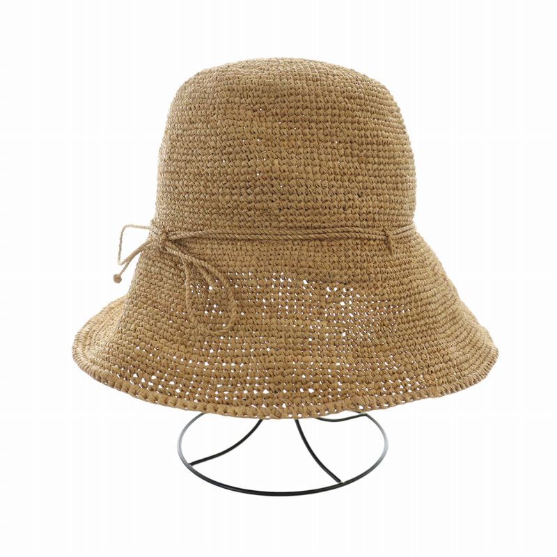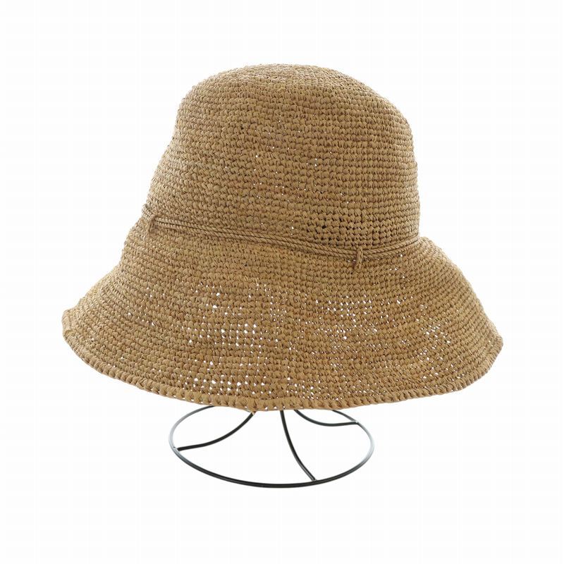 ヘレンカミンスキー HELEN KAMINSKI 麦わら帽子 ラフィア ハット ロゴ チャーム リボン 茶 ブラウン ■GY18 /MQ レディース