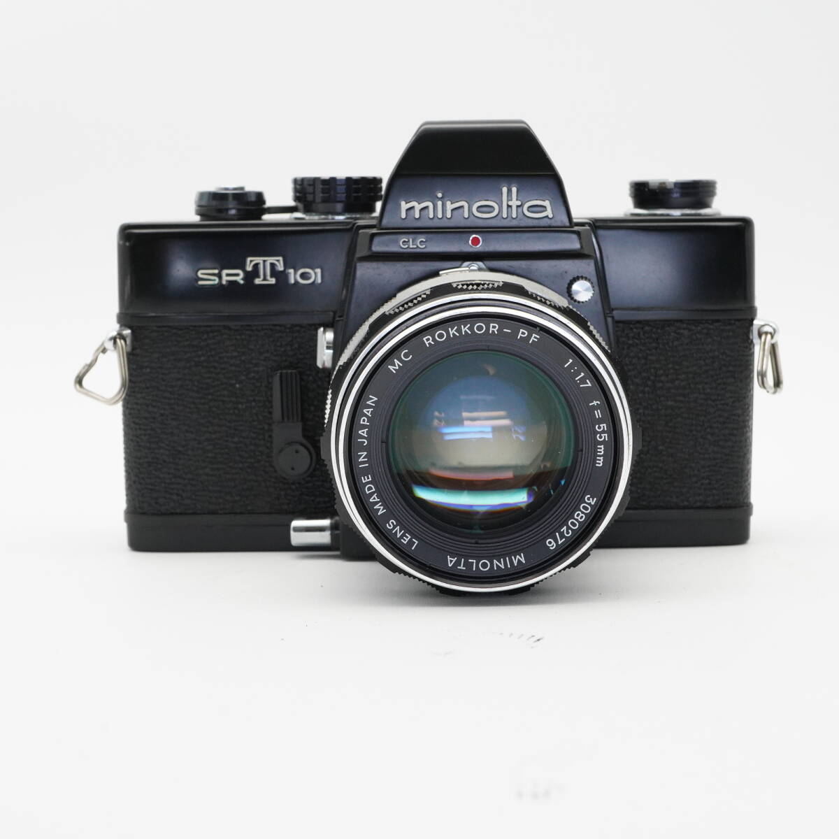 良品 Minolta ミノルタ SRT101 ブラック (シャッターOK 露出NG) MC ROKKOR-PF 55mm F1.7 フィルム一眼レフカメラ #AA6390