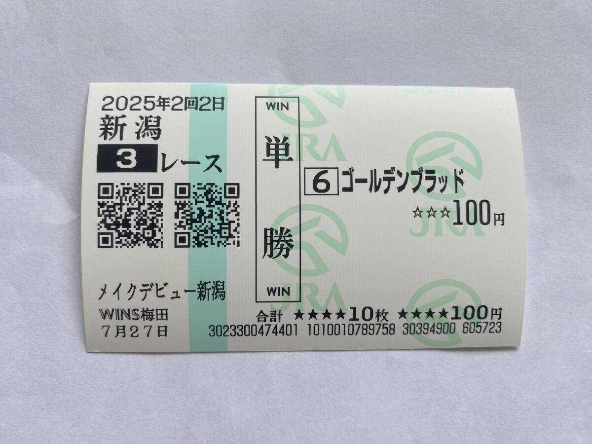ゴールデンブラッド メイクデビュー新潟 場外単勝馬券