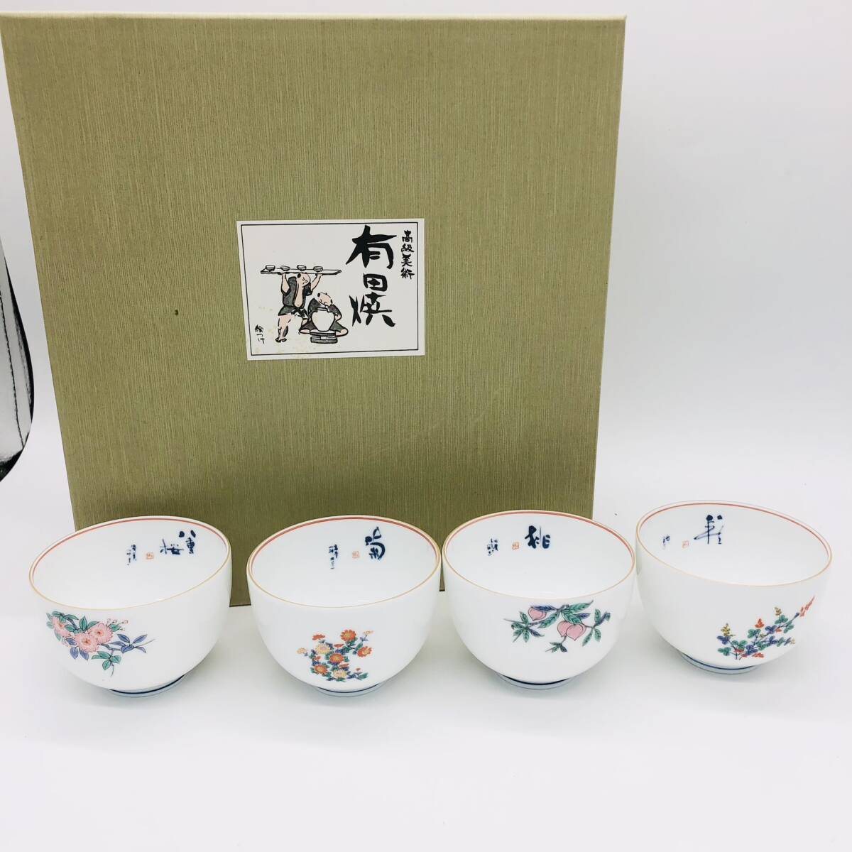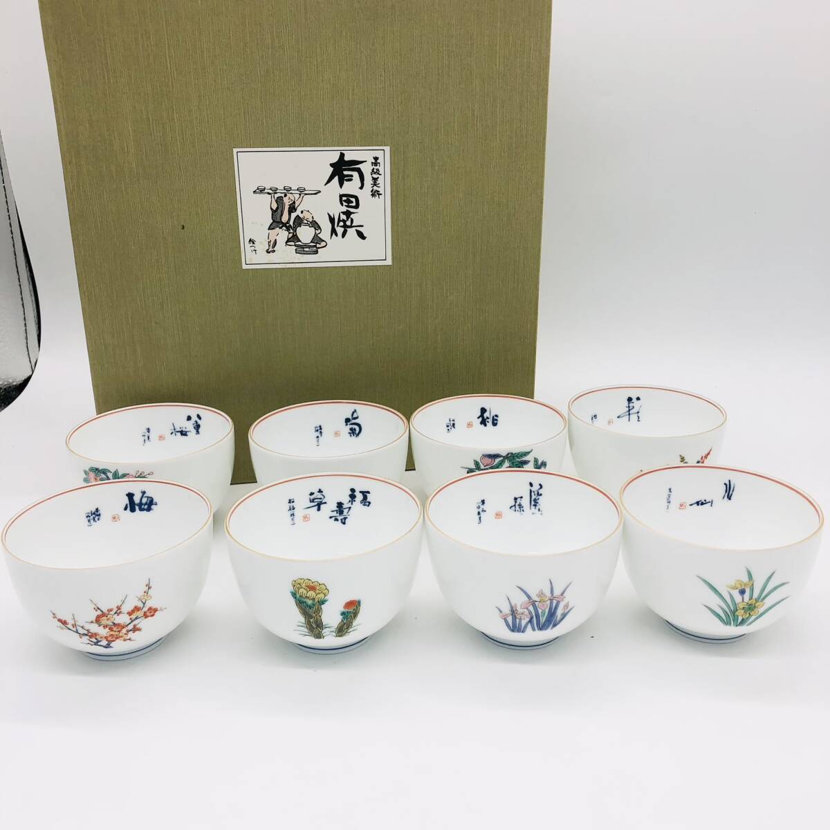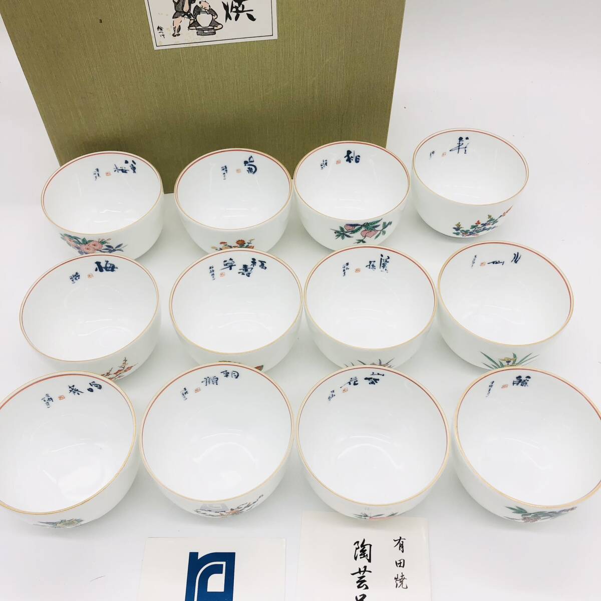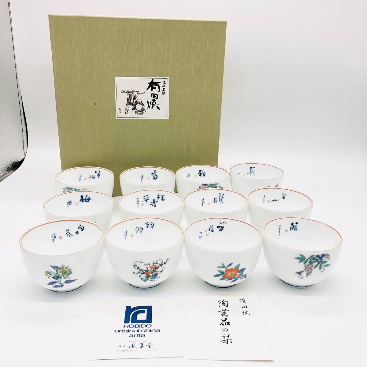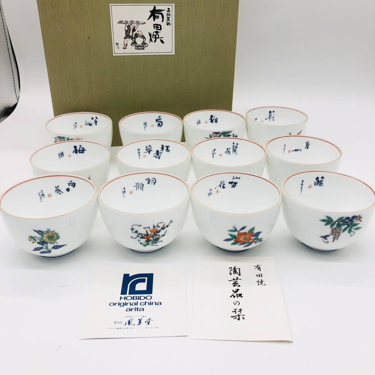 | 保管品 HOBIDO 有田焼 絵つけ 花ごよみ 花 12客 12個 セット 箱付 湯呑 湯呑み コップ 和 食器 陶芸 鳳美堂 季節の花 | ||