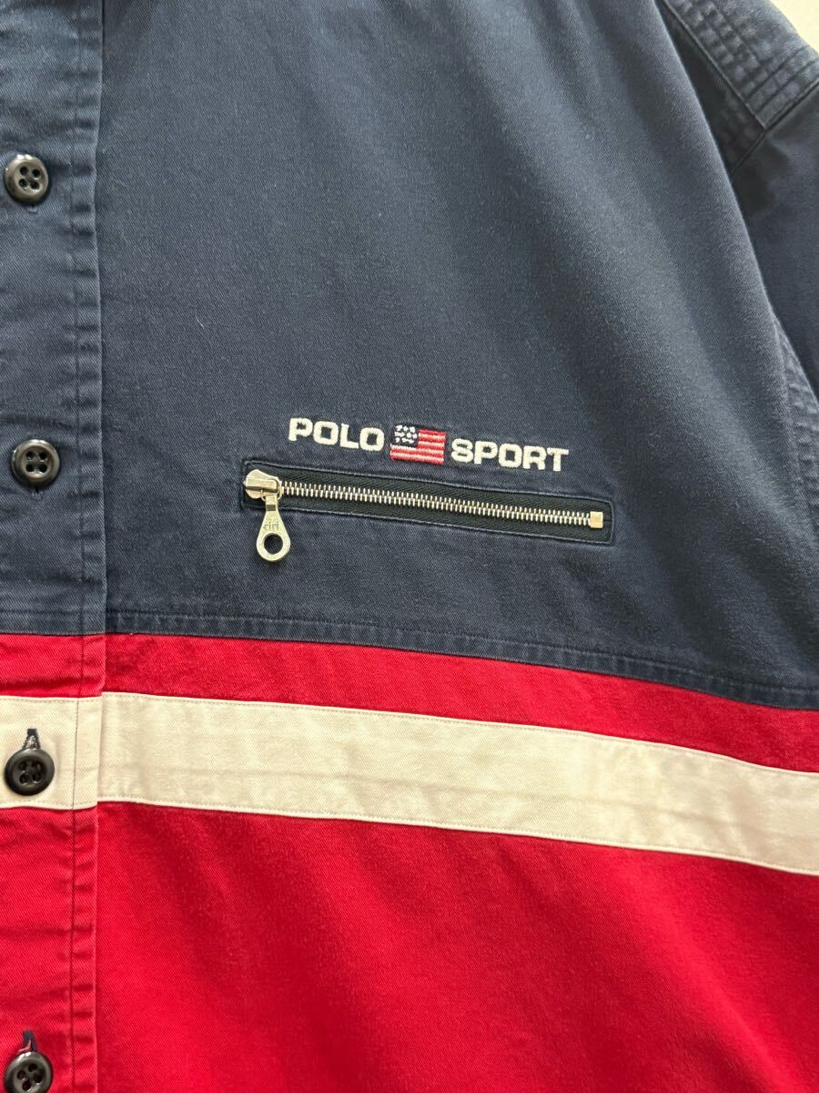 Ralph Lauren POLO SPORT 半袖 シャツ M ネイビー×レッド Polo ATCTIC ポロ スポーツ ラルフローレン ロゴ 星条旗