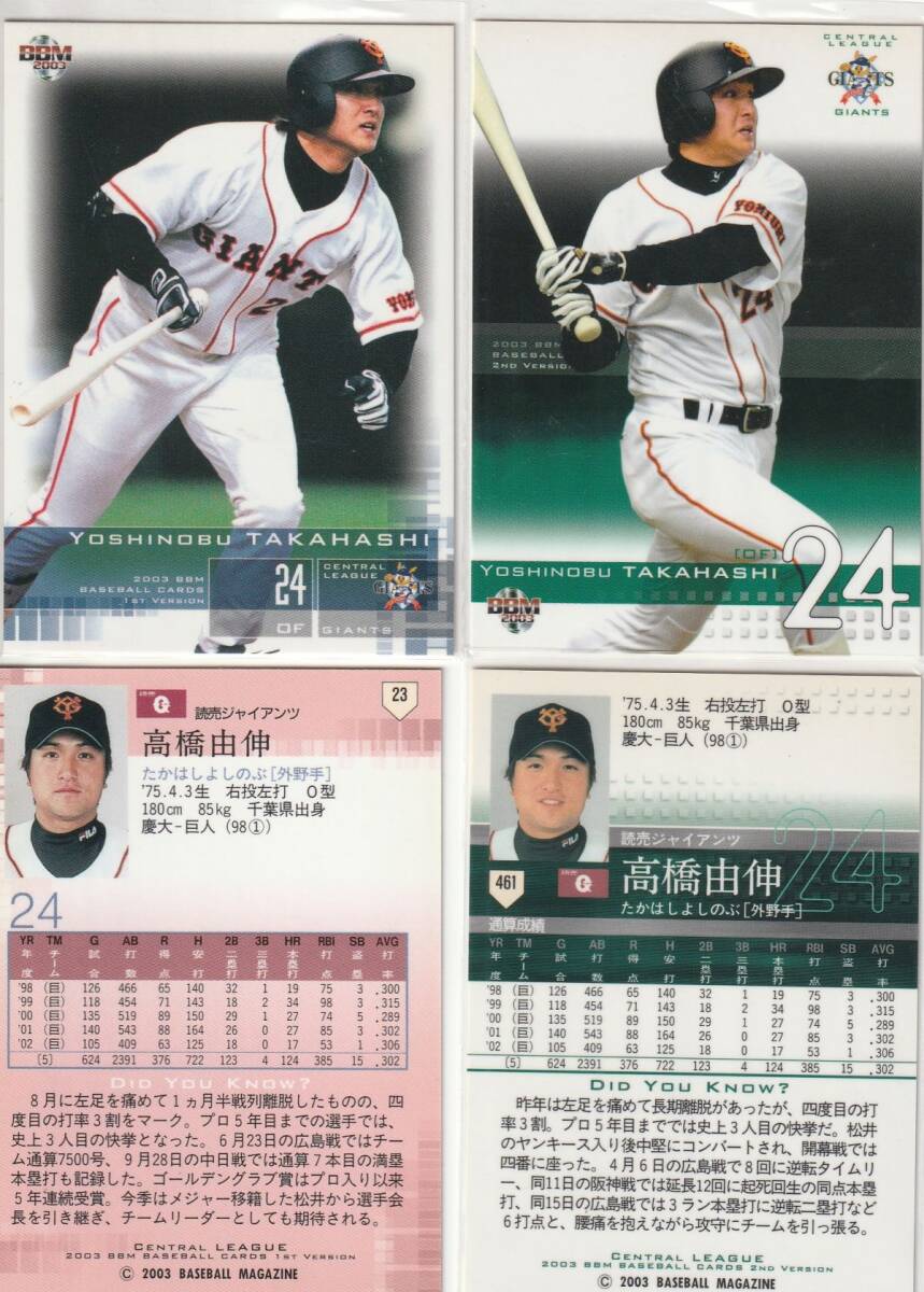 ●2003BBM【高橋 由伸】 前後期版 通常版2種セット No.23&461:巨人 R3