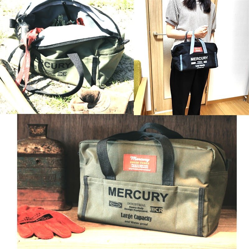 「マーキュリー ツールバッグ」 マーキュリーのアウトドアで大活躍すること間違いなしのツールバッグです。 内部にウレタンシートが施されているので衝撃を吸収します。 アウトドアで使うベグや工具などをガサッと入れて持ち運ぶのに便利です! もちろん家庭用の日曜大工用品を収納するのにもぴったり。 内側にはミニオープンポケットが2つあり、ピンやフック等の細々とした金具類や、ロープなどを整理して収納することが可能です。 休日にパパさんが日曜大工をする時に使用する、DIY用の工具ボックス代わりにしてもOK! アウトドアまでシーンを問わず使いやすいデザインと機能性です! プレゼントにもいかがでしょうか? |