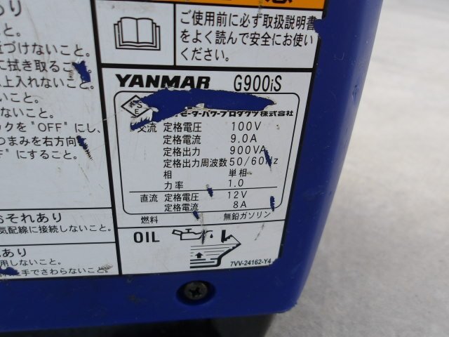 ヤンマー インバーター 発電機 G900is 100V 900VA 50/60Hz 中古の出品です。