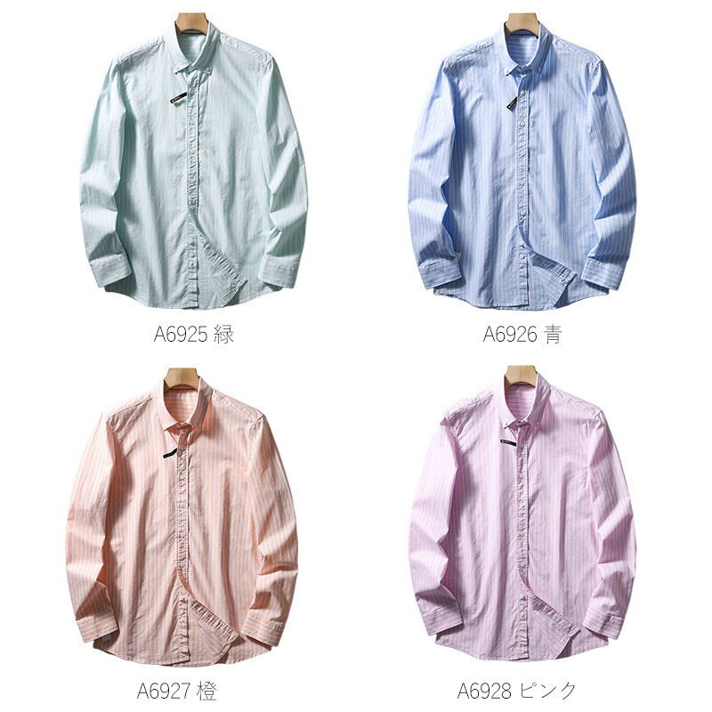 A6927-L 新品 DCKMANY オレンジ ストライプシャツ 綿100% 長袖シャツ オックスフォード 春秋 コットン メンズ ボダンダウン ワイシャツ