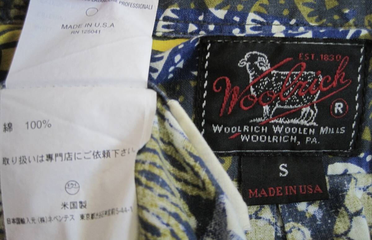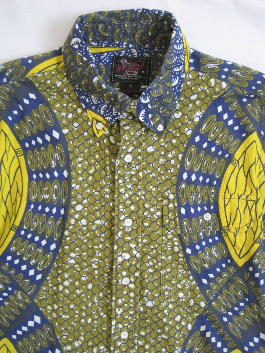 ウールリッチ ウーレンミルズ USA製 半袖 ボタンダウン柄シャツ。Sサイズ。