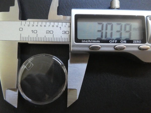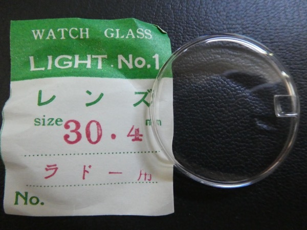 ラドー用風防未使用(当時物社外品)です。直径30.4ミリ表記(実寸計測は画像のような測り方で30.39ミリくらい)。適合機種は不明です。