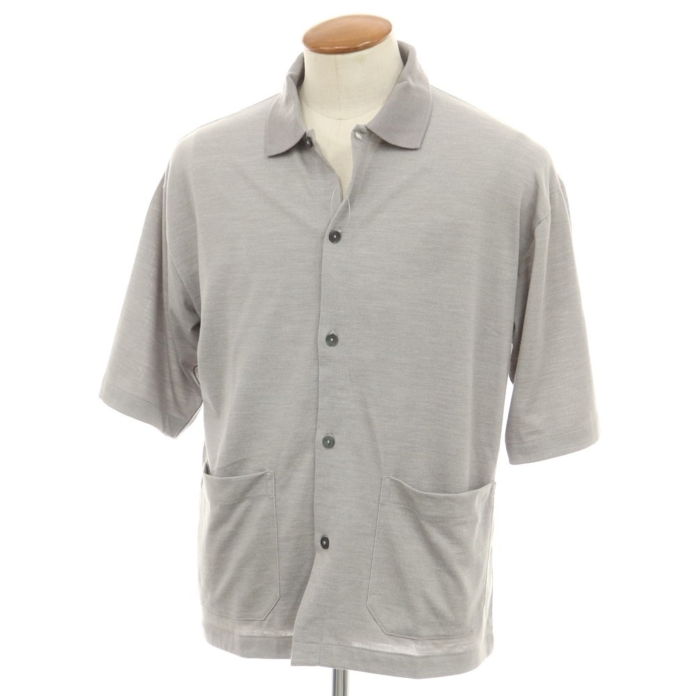 さらりとした柔らかなポリエステルウール素材を用いた、半袖シャツです。ウールミックスならではの色合い、風合いが特徴的で、カットソー素材なのでカーディガン感覚で気軽に着用できる一枚。Tシャツの上から軽く羽織るだけで生地感、デザインも相まって上品な雰囲気にまとまる一着です。