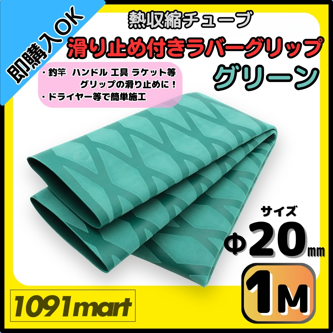 【送料無料】熱収縮チューブ ラバーグリップ Φ20㎜ 100㎝ グリーン 滑り止め加工 グリップの補強に 釣竿 工具 ラケット