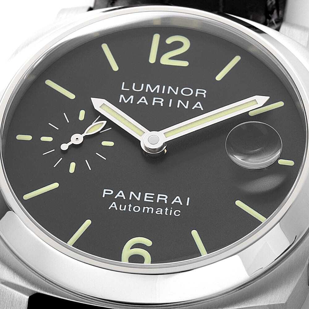 | モデル情報 | 手頃な40mmケースサイズが人気のルミノールマリーナ。ステンレスケースにブラックの文字盤で無駄な装飾の一切を削ぎ落とした「格好良い」の一言に尽きるデザインです。 大きめのインデックスと太い長短針による視認性に加え、300mの防水性能を兼ね備えた、実用的でファッション性に富んだ一本。 イタリアンテイストに溢れた新しいスポーツウォッチです。 |