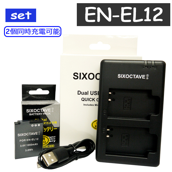 EN-EL12 Nikon ニコン 互換バッテリー1個と互換デュアルUSBチャージャーの2点set 2個同時充電可能 Coolpix S1000pj S610C S8000 A1000 B600