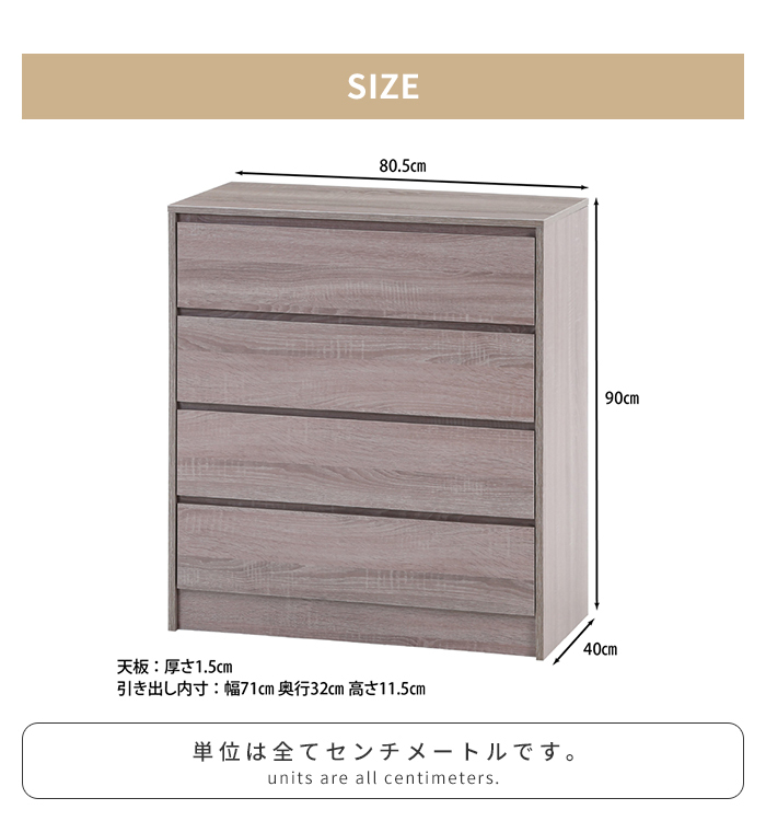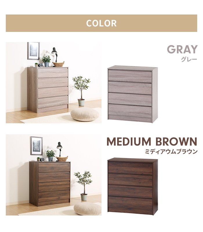 | チェスト 4段 工具不要 タンス 幅80.5 奥行40 木製 引き出し 収納棚 収納ケース 棚 大容量 シンプル おしゃれ 便利 箪笥 ウッドチェスト キャビネット 収納 木製家具 インテリア 衣類収納 小物収納 80.5×40 引き出し 簡単組立 大容量 天板 ディスプレイ リビング 寝室 ワンルーム グレー ミディアムブラウン |