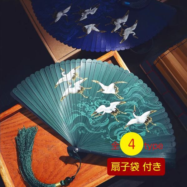 (l4番)扇子 おしゃれ イラスト 鶴 つる デザイン おすすめ メンズ レディース 竹扇子 涼しい 竹扇子 女性 総竹扇子 男性 女性 総竹扇 高級