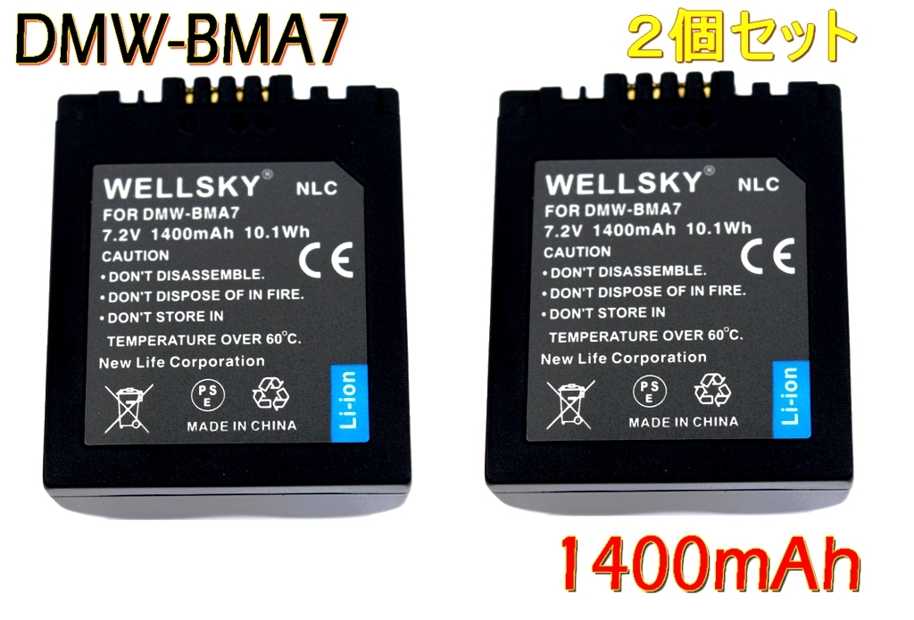 新品 Panasonic パナソニック DMW-BMA7 対応 互換大容量バッテリー 2個