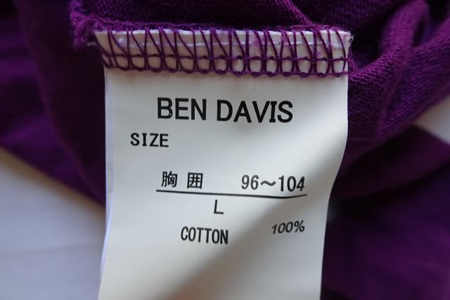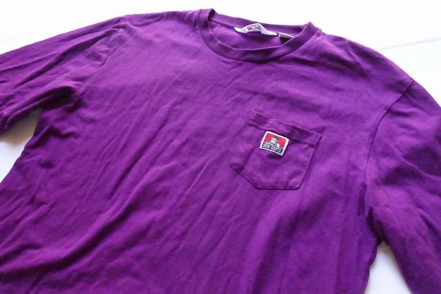 BEN DAVIS/ベンデイヴィス/長袖Tシャツ/ロンT/カットソー/クルーネック/左胸ポケット/袖口リブ/紫/パープル/Lサイズ(7/28R7)