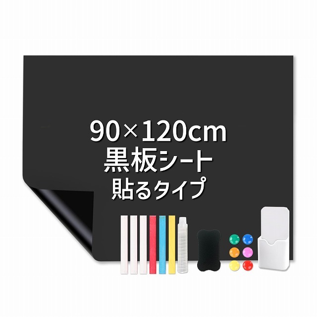 黒板シート 90×120cm 粘着式 ブラック マグネット 磁力 カット 裁断可能 チョーク 消しゴム付き ホワイトボードシート