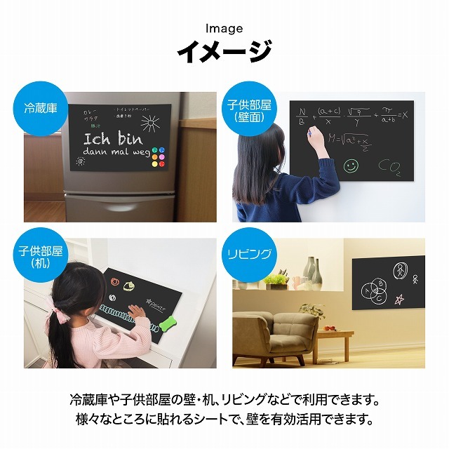 壁に張り付けたりもできます。便利な黒板シートで新しいライフスタイルをお楽しみください。