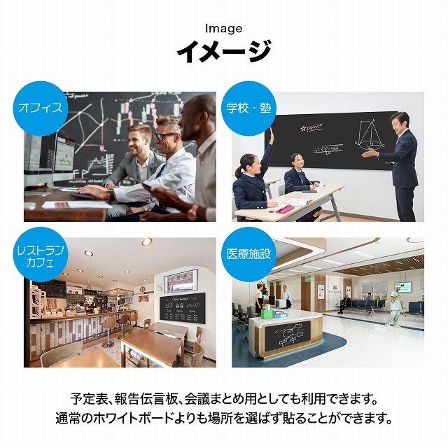 新たな学習スペースの確保、会社のオフィスや会議室でホワイトボード代わりに、ご家庭の伝言板やスケジュール管理、アート制作など