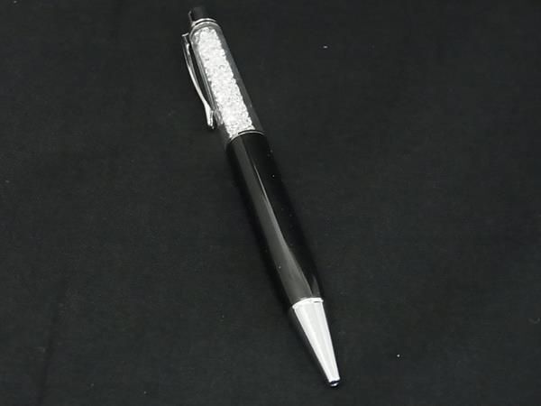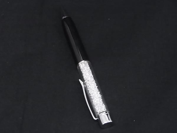 ■美品■ SWAROVSKI スワロフスキー スターダスト ツイスト式 ボールペン 筆記用具 ステーショナリー ブラック系×シルバー系 DD7055