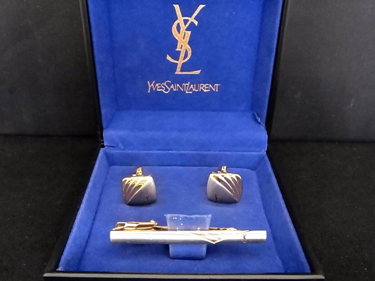 ■新品■№1778 【YSL】サンローラン 【ゴールド・シルバー】■カフス&ネクタイピン タイピン セット♪