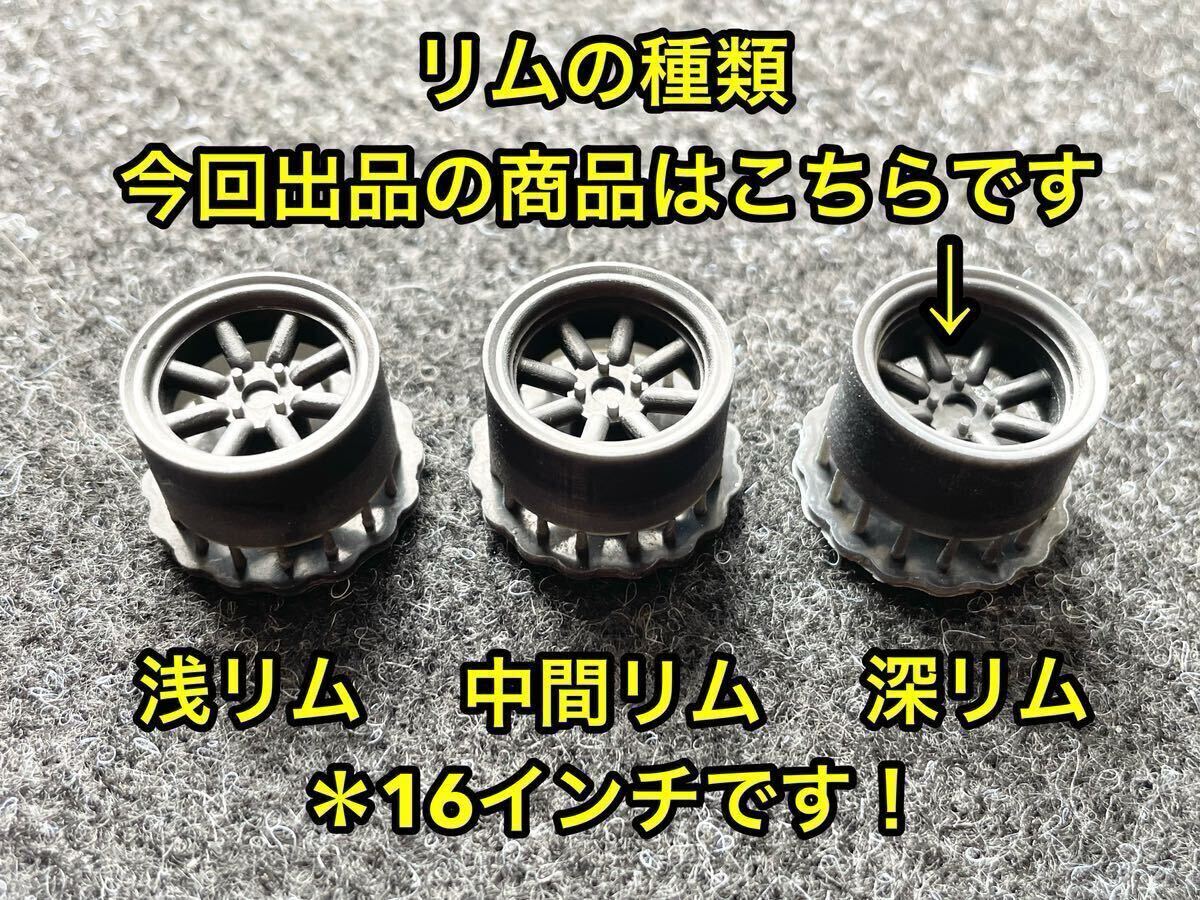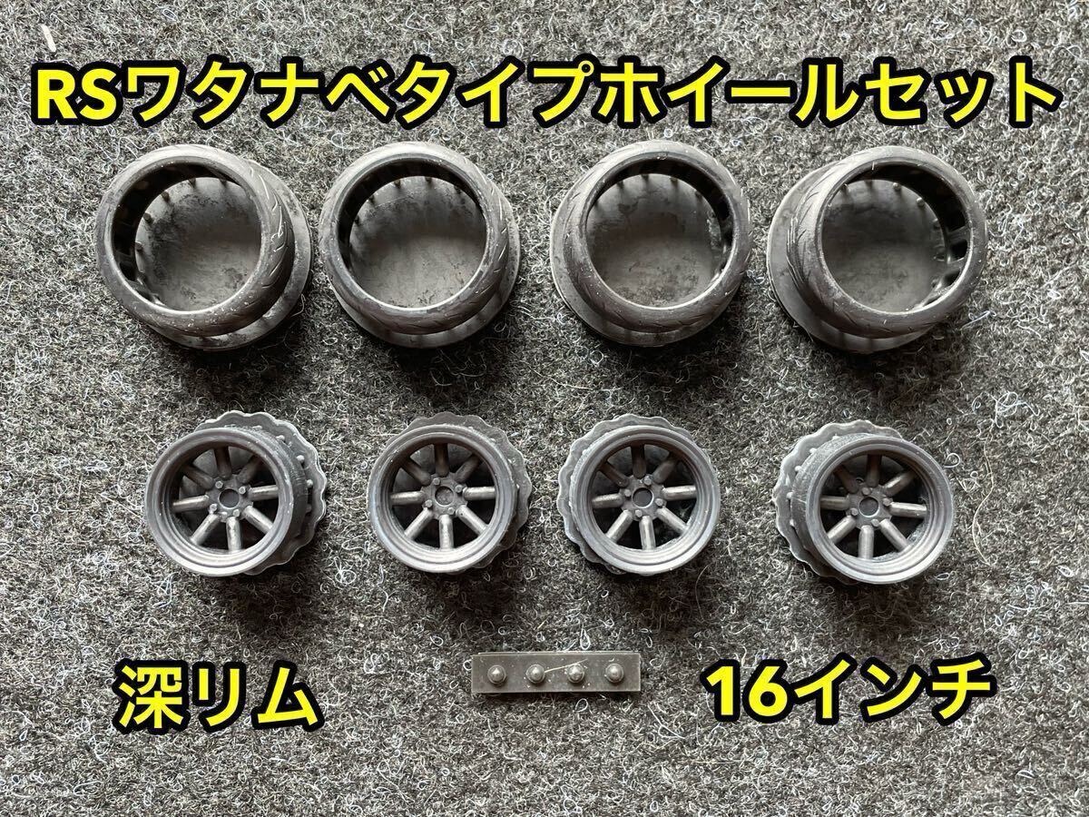 *3Dプリンター製の1/24 16インチ RSワタナベ8スポークタイプホイール4個セットです。タイヤ、ハブキャップが付属し