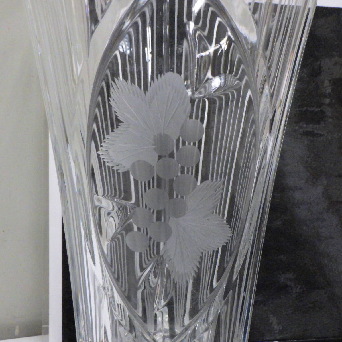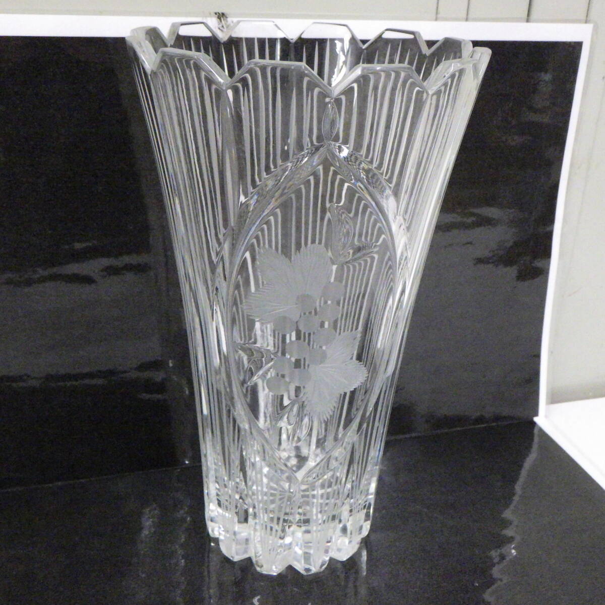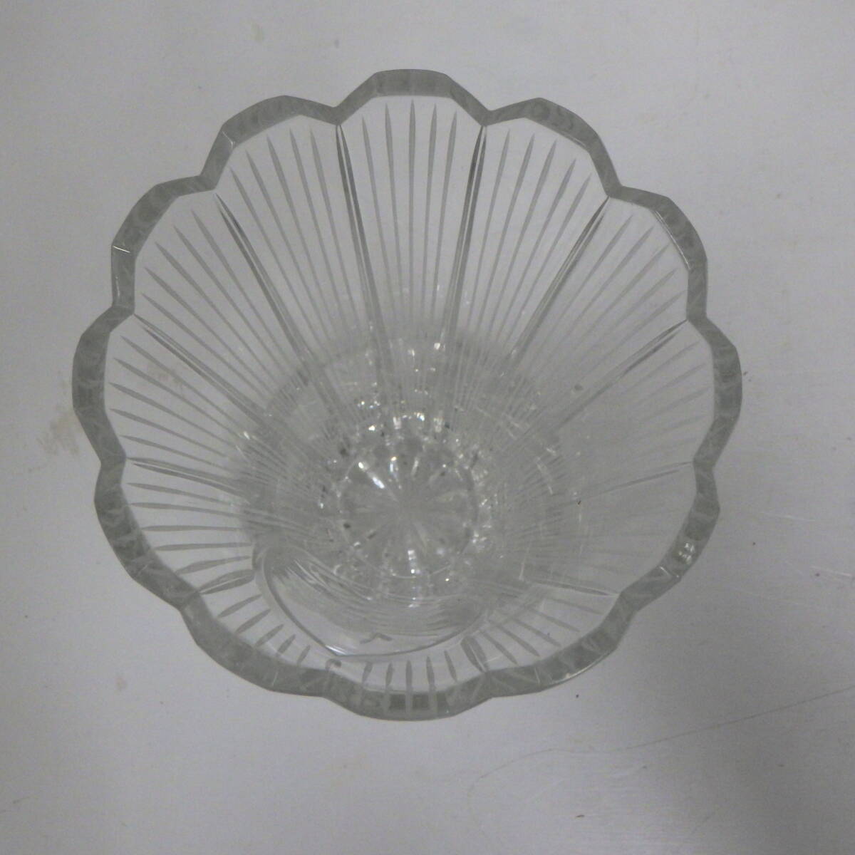 チェコ・ボヘミア クリスタルカット ガラス 花入れ 広口 花瓶 フラワーベース