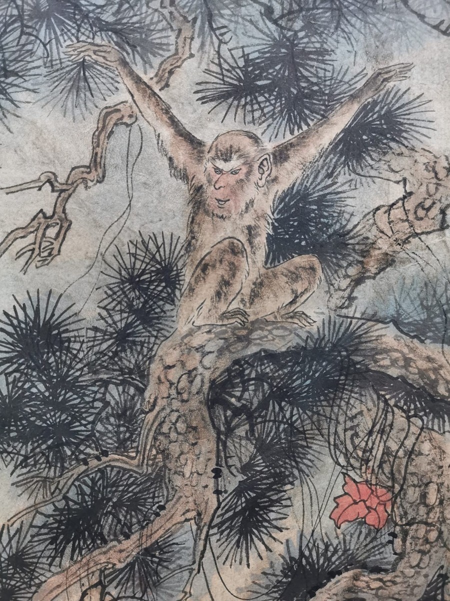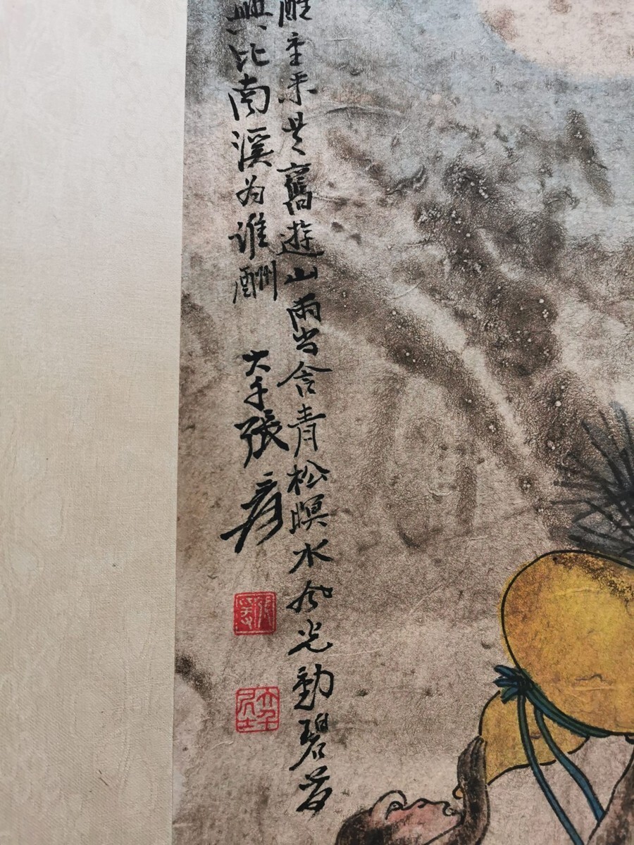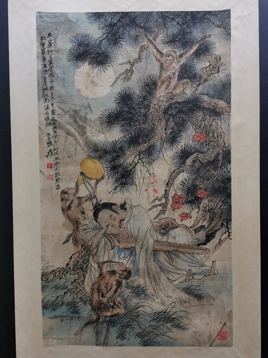 中国書画「張大千 人物 猴図」肉筆紙本 掛け軸 墨寶妙品 書画立軸 巻き物 古美術 旧蔵出