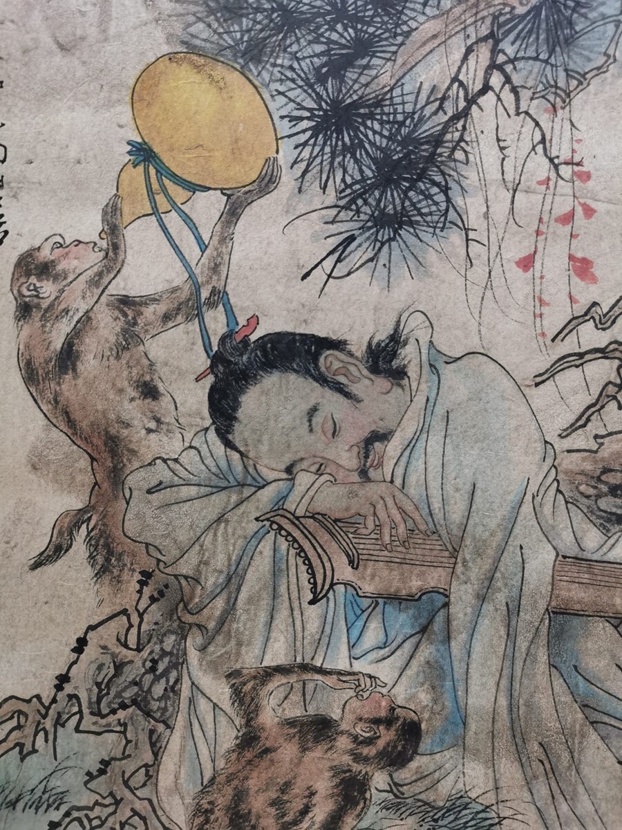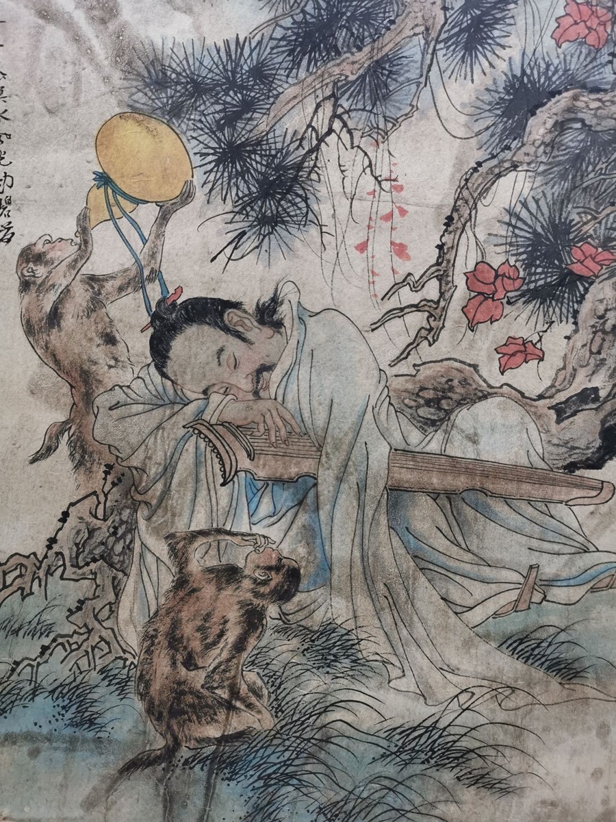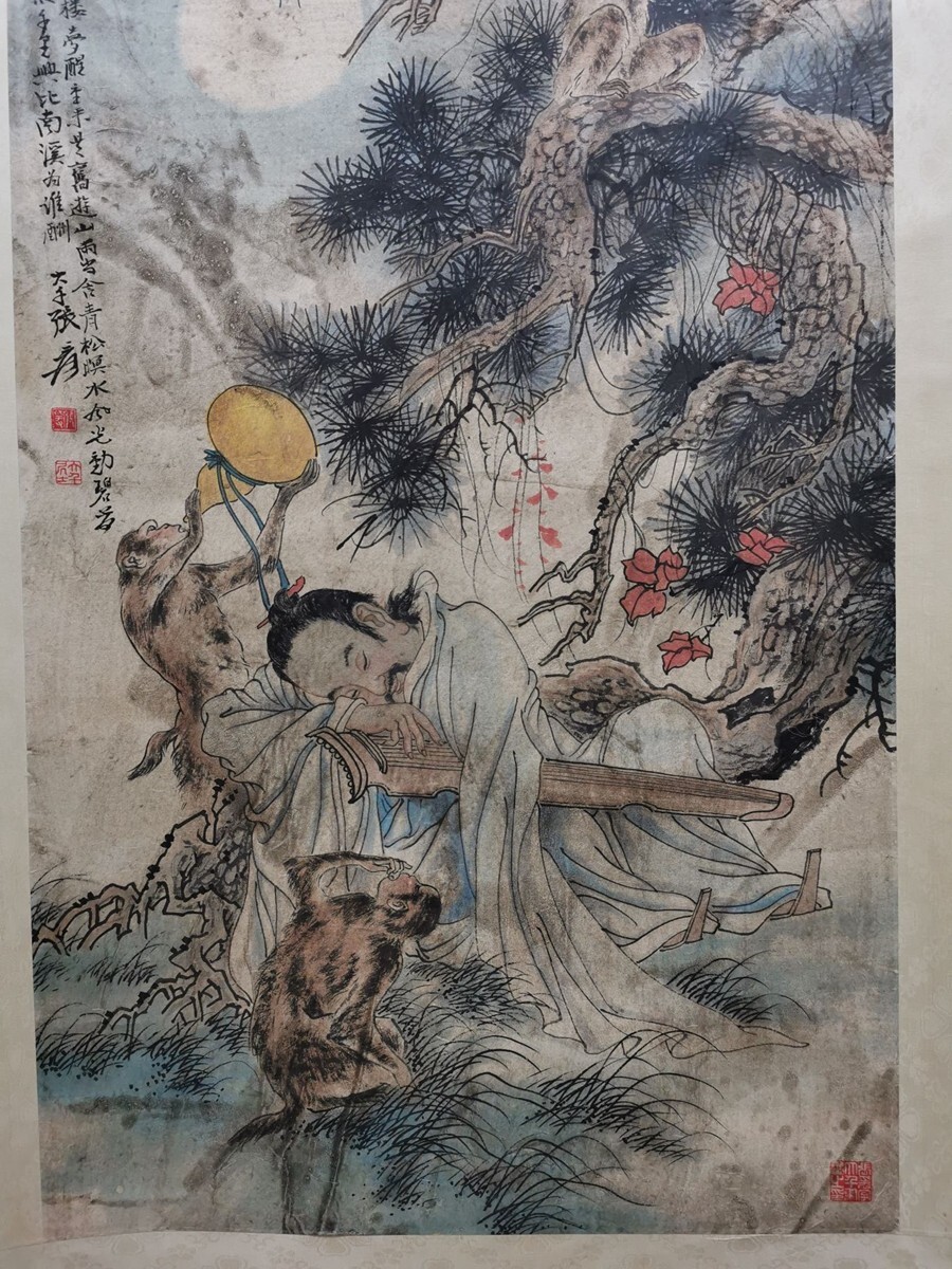 中国書画「張大千 人物 猴図」肉筆紙本 掛け軸 墨寶妙品 書画立軸 巻き物 古美術 旧蔵出