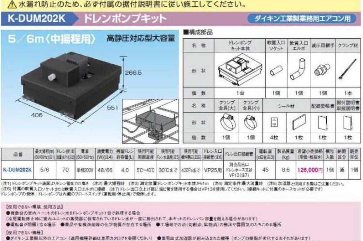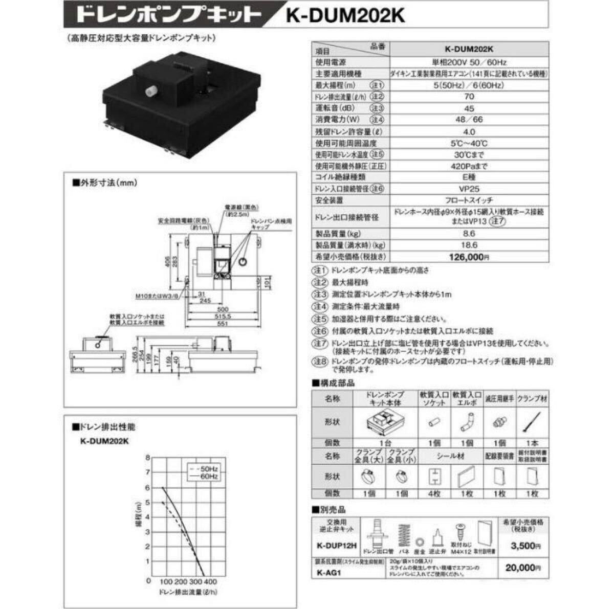 ドレンポンプキット オーケー空調部材 オーケー器材株式会社 K-DUM202K 中揚程タイプ(5/6m) 高静圧対応型大容量