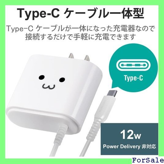 ☆人気商品 エレコム ELE AC充電器/Type-Cケーブル一体型/2.4A出力/2.5m/ホワイトフェイス 49