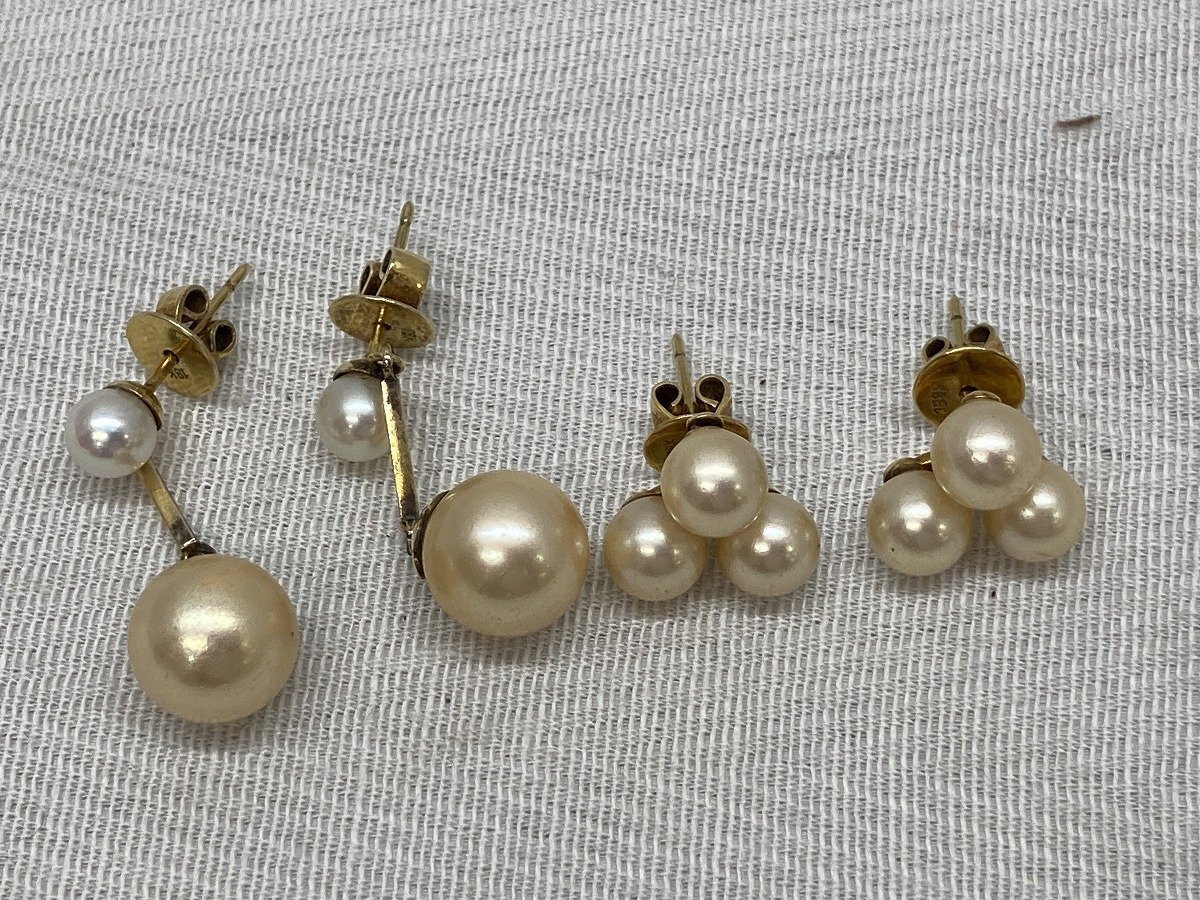 中古品です。 外観にやや使用感があり、各所にスレ、汚れがあります。 パールの表面には素材由来の凹凸があります。 金具にはそれぞれ「18K」刻印があります。 金属のくすみ、黒ずみがあります。当方では磨き、仕上げ処理を行っておりません。 写真や記載にない不具合があるかもしれませんが、現状渡しにてご容赦ください。 完全な状態をお求めの方、細かい点が気になる方はご入札をお控えください。 ノークレーム・ノーリターンでお願いいたします。 |
