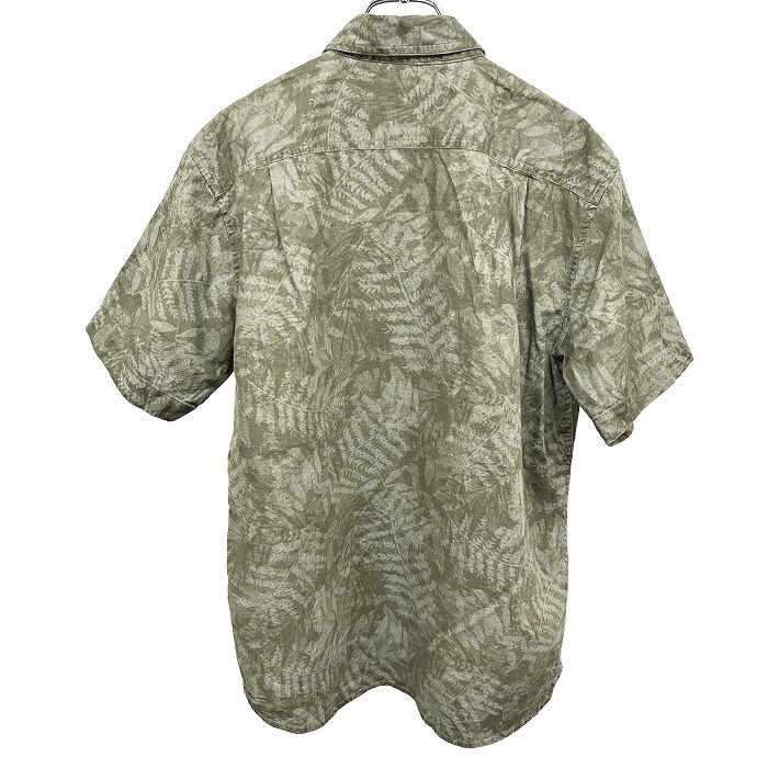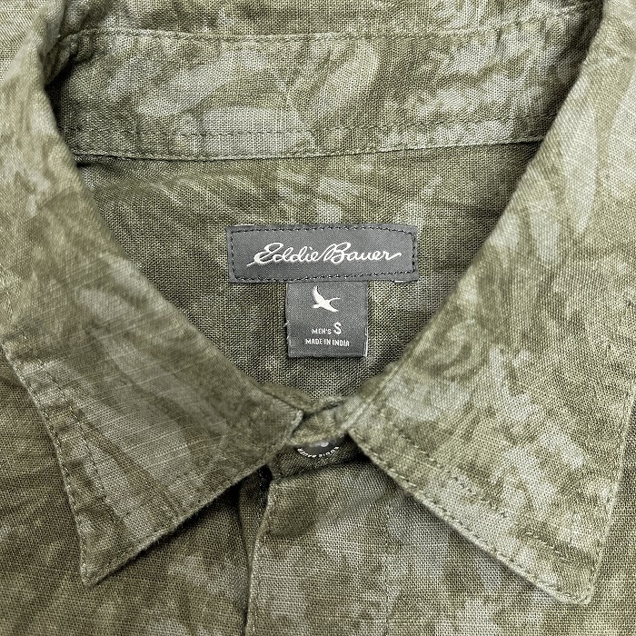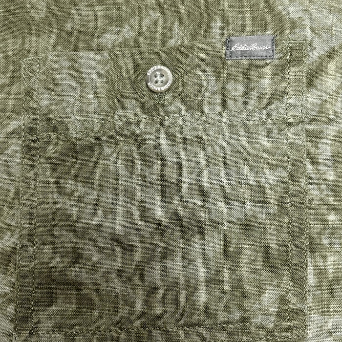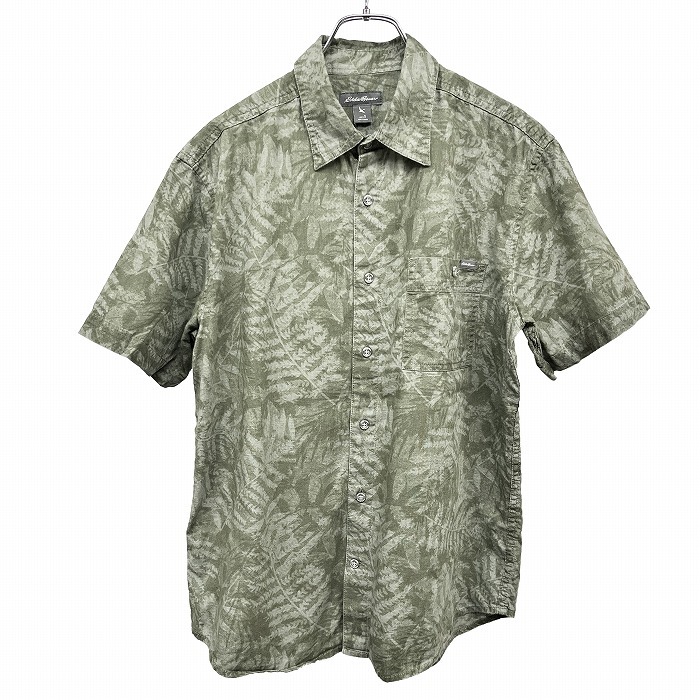 商品タイトル | エディーバウアー Eddie Bauer 総柄シャツ 植物柄 葉っぱ柄 半袖 胸ポケット付き 綿100% コットン100% S グリーン 緑 メンズ |