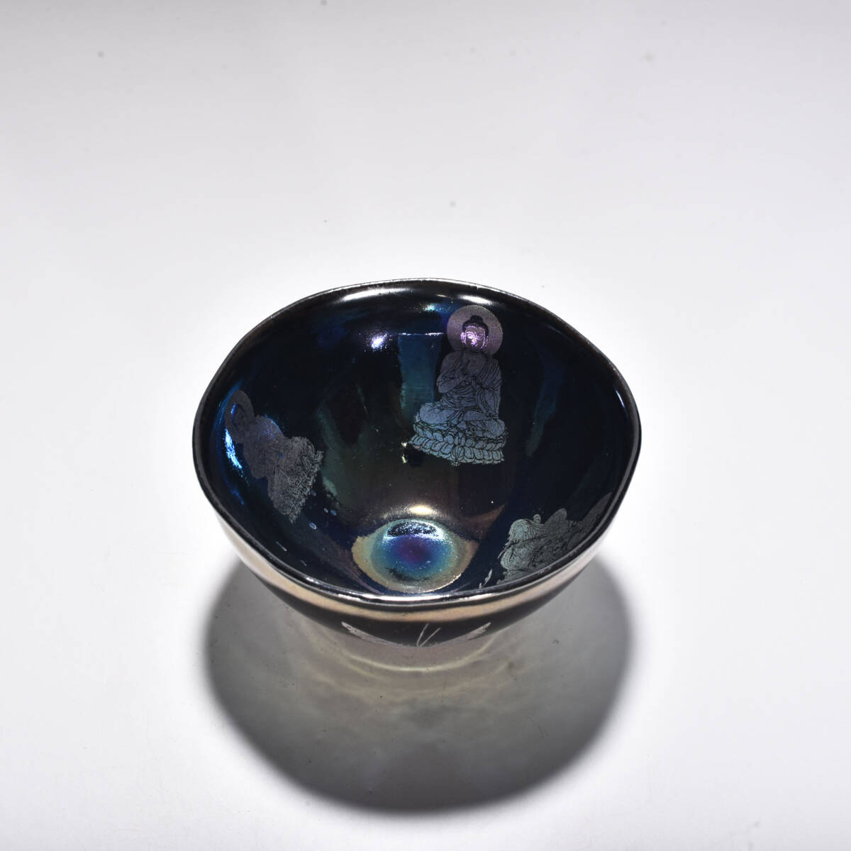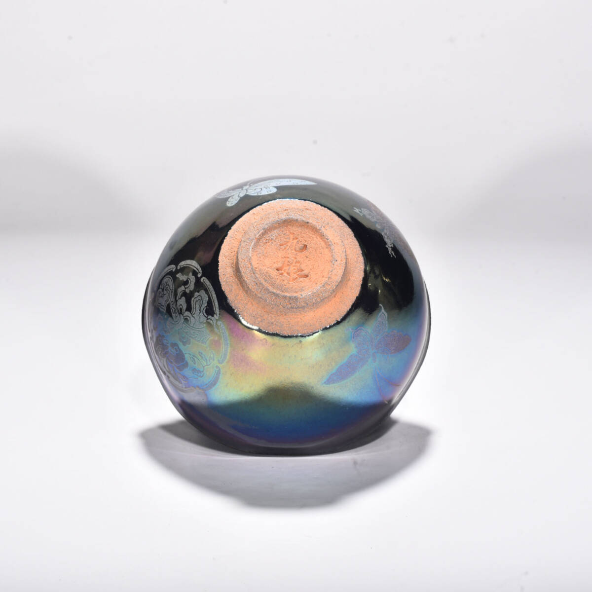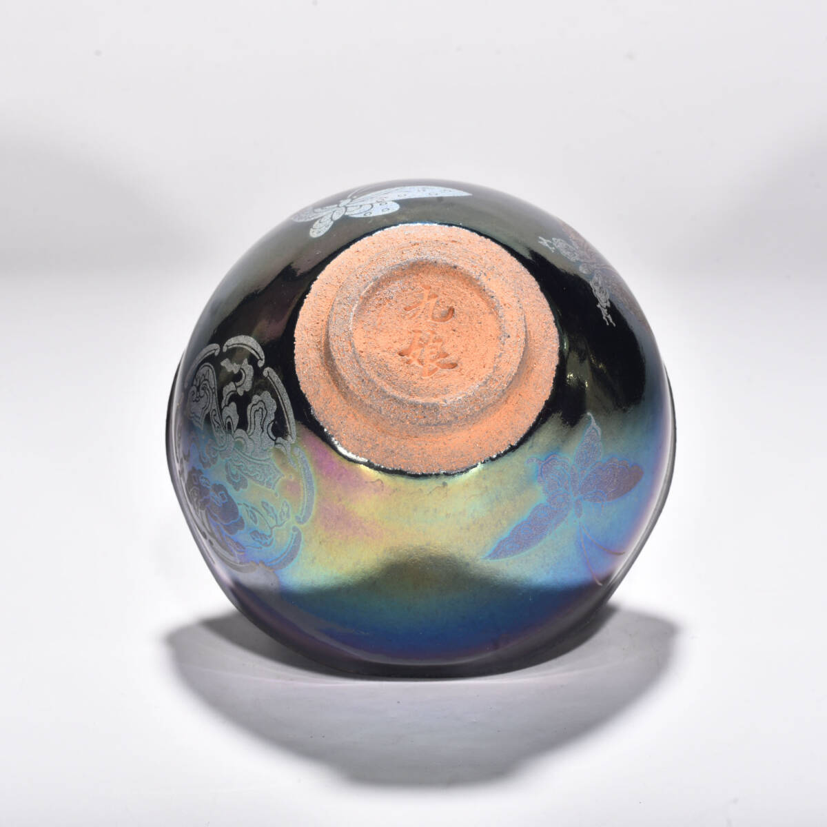商品名 ■TE123■宋建窯 窯変 七彩彩枝蝶紋盞 建盞 九娘款 極細工 時代物 古陶磁器■