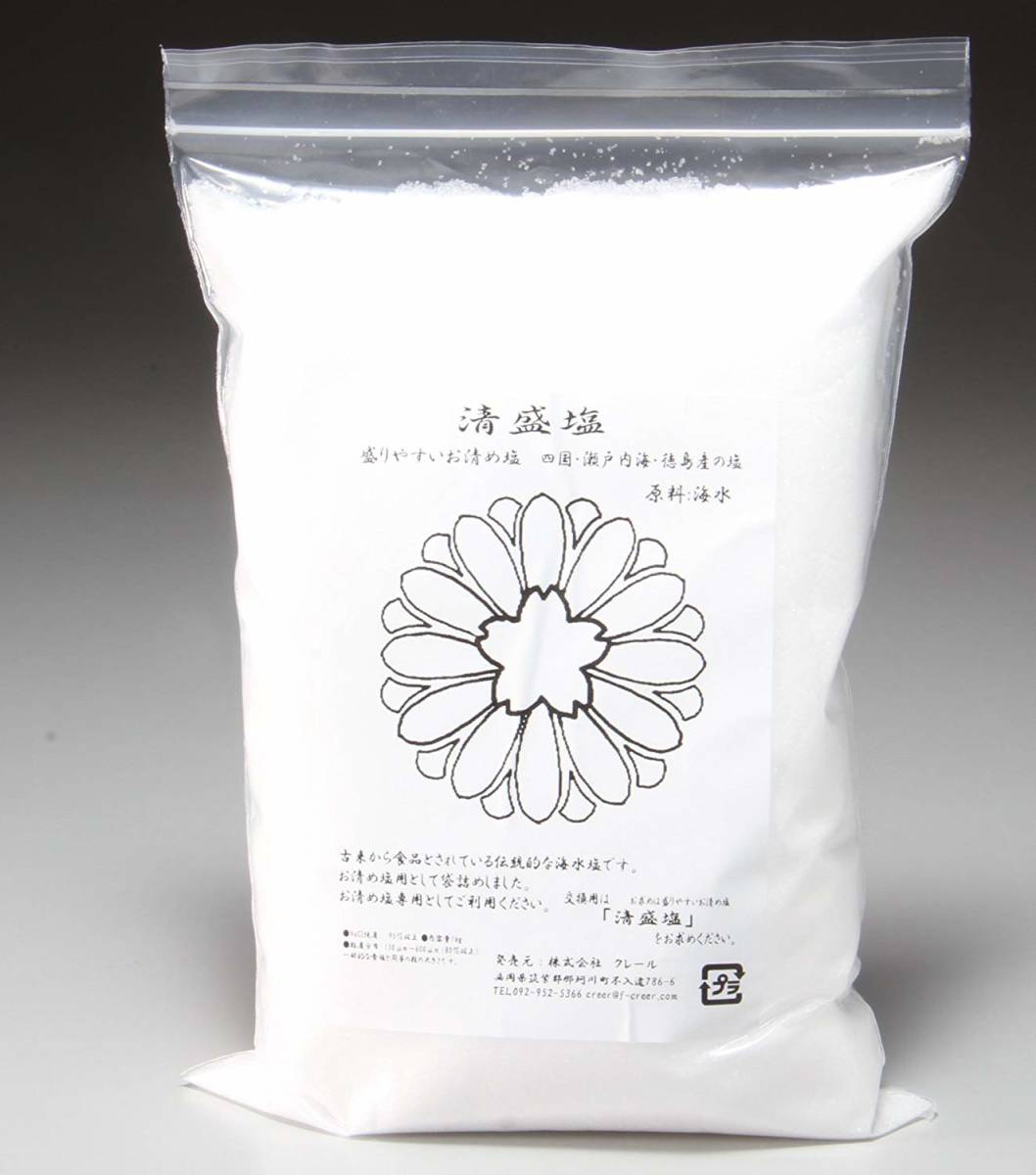 盛り塩清めの塩 盛りやすい塩特許庁申請商標「清盛塩」1kgジップ付き袋入が2個。お清めに適したしっとりとした天然塩。ジップ袋で保存も便利。スタンド保存もできるな厚てのジップ袋入り。本国内産 四国瀬戸内海・徳島産の塩。 盛り塩揃いの中にセットされているお清め専用のお塩の取替用。 通常の食塩とくらべると少し「しっとり」した塩。 お清め塩に最適のあら塩です。 粒度分布:150μm~600μm・80%以上 一般的な食塩より、若干粒が大きいサイズです。 塩化ナトリウムではきちんと盛り付けしにくいのでこの海水からの塩がお勧めです。 ジップ袋なので便利です。イメージ写真のお皿や型は含みません。清盛塩のみです。送料無料。送料込は以下の地域は含みません。北海道・沖縄・離島着払いとなります。