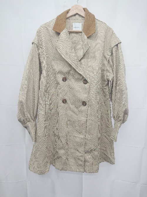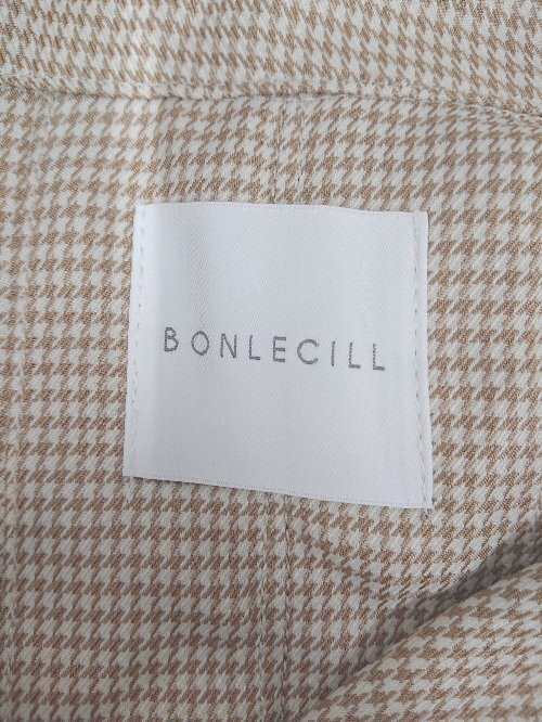 ■ ⊆ BONLECILL ボンルシール 千鳥格子柄 長袖 ピーコート サイズF ベージュ系 マルチ レディース E