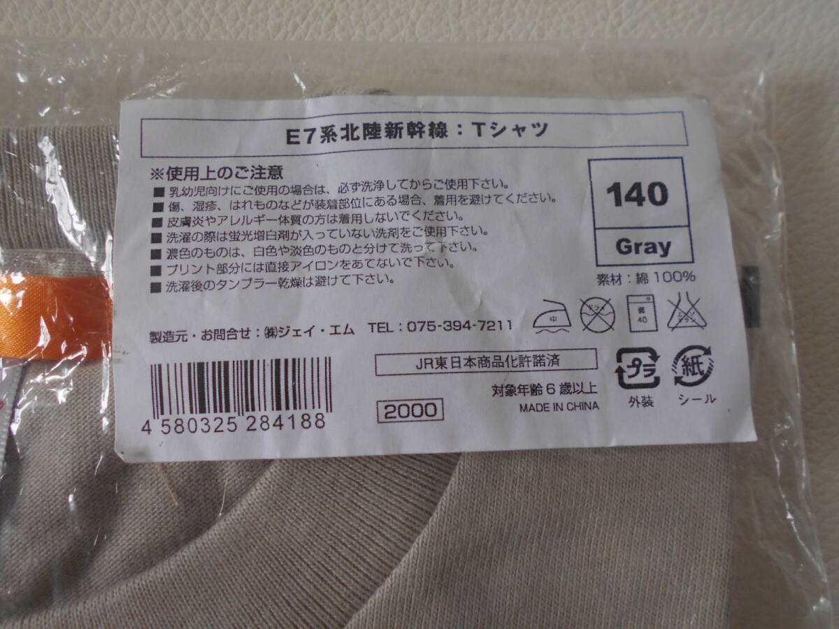 鉄道グッズ E7系 北陸新幹線 子供服 Tシャツ 140 サイズ グレー 半袖 未使用自宅保管品