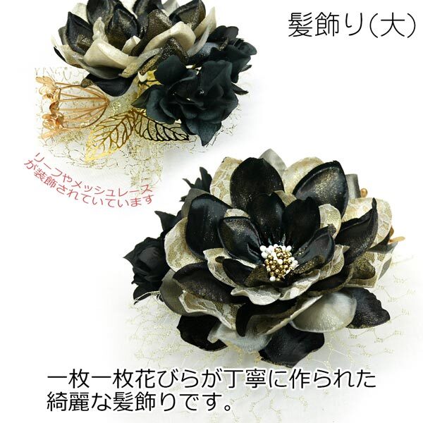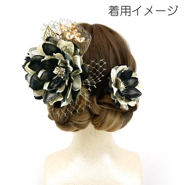 髪飾りにはコームやUピンが付いておりますので簡単に装着して頂けます。