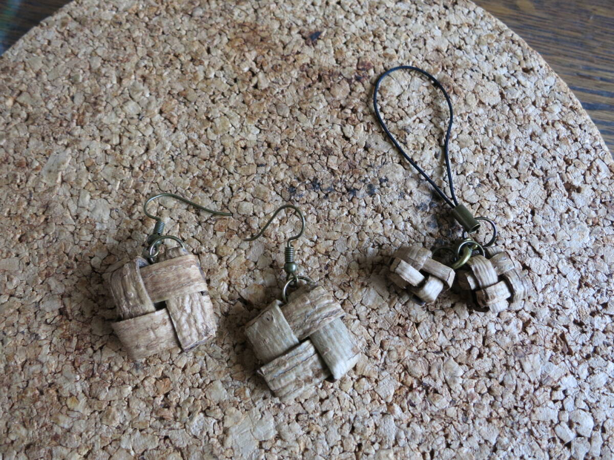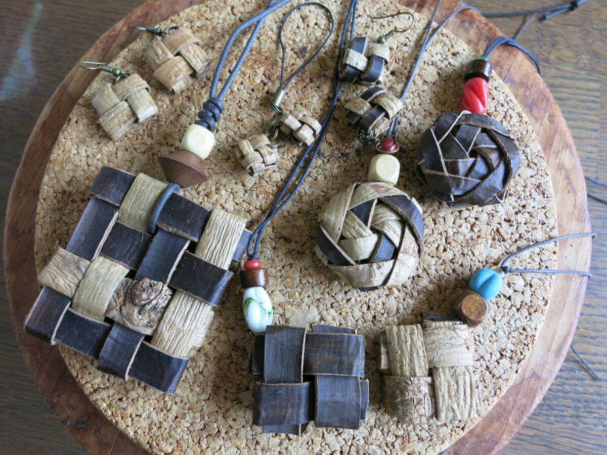 新品国産くるみ市松編みフックピアスとチャーム*着物リメイクワンピース浴衣一閑張り籠バッグ山葡萄あけび絣絞り染め藍染柿渋染め古布