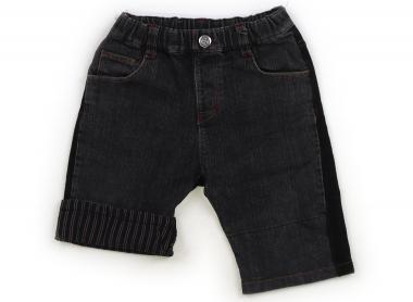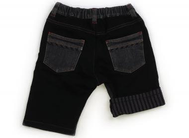 デニム地とカットソー。すそを折り返して2wayでご使用いただけます。ウエストのゴムは交換穴があります。毛羽立ちと洗いざらし感がありますが、まだお使いいただけそうです。