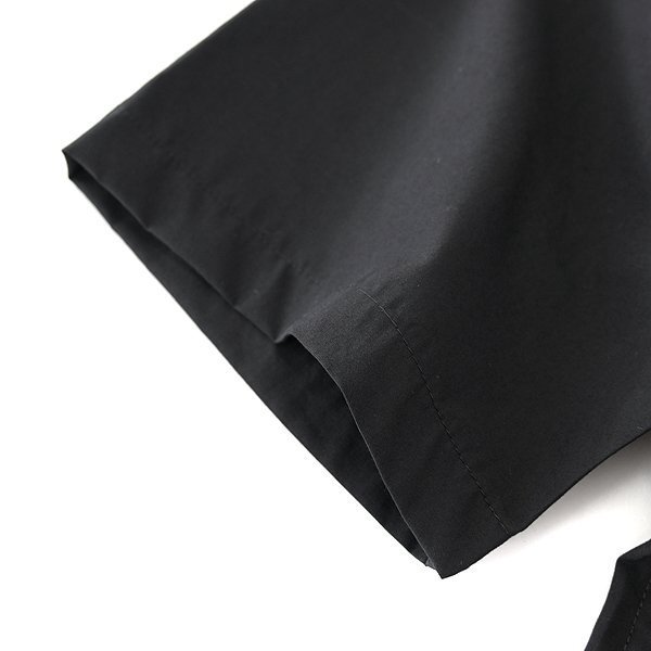 新品 未使用 紙タグあり Lサイズ(画像は別サイズで撮影) チェスト96~104 ※商品に記載されたサイズ・寸法です※ 首回り42cm 肩幅49cm 身幅60cm 袖丈28.5cm 着丈75cm ポリエステル65% レーヨン35% ブラック×グレー |