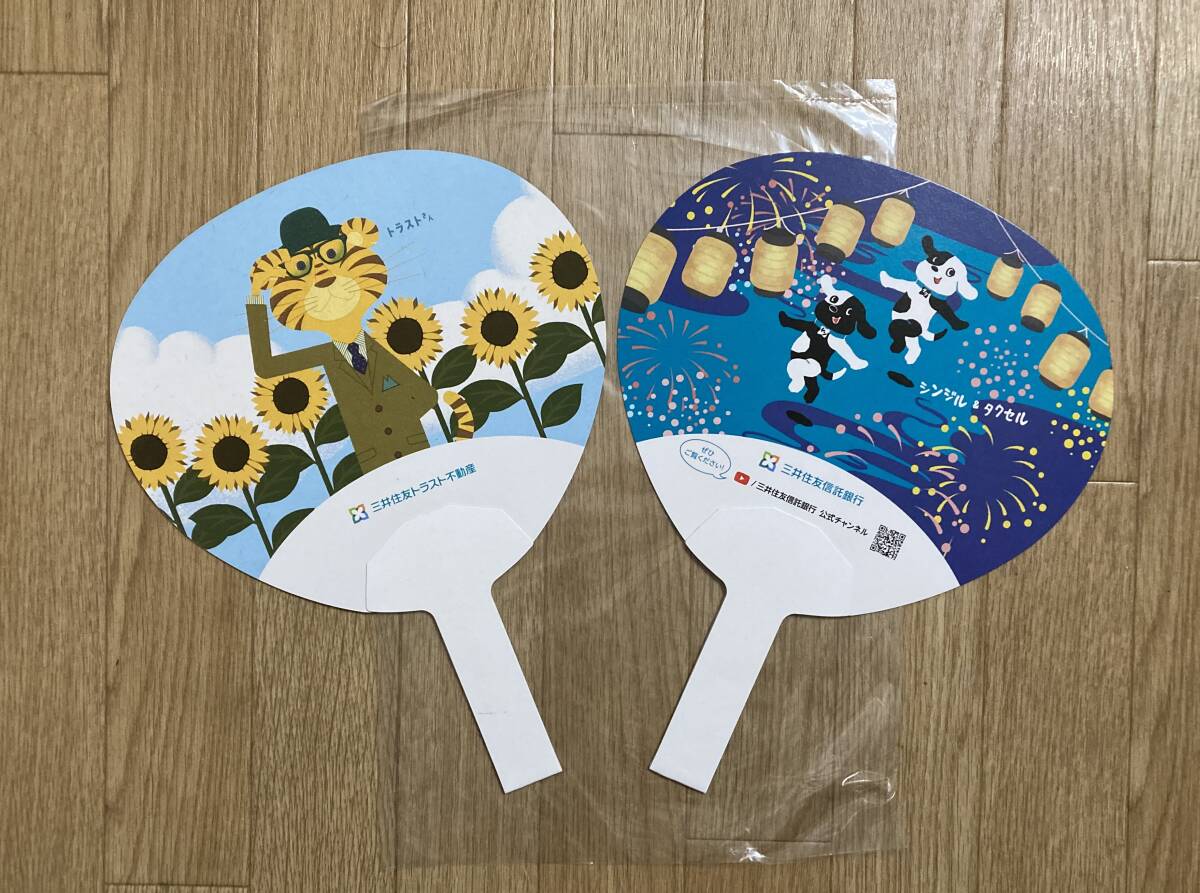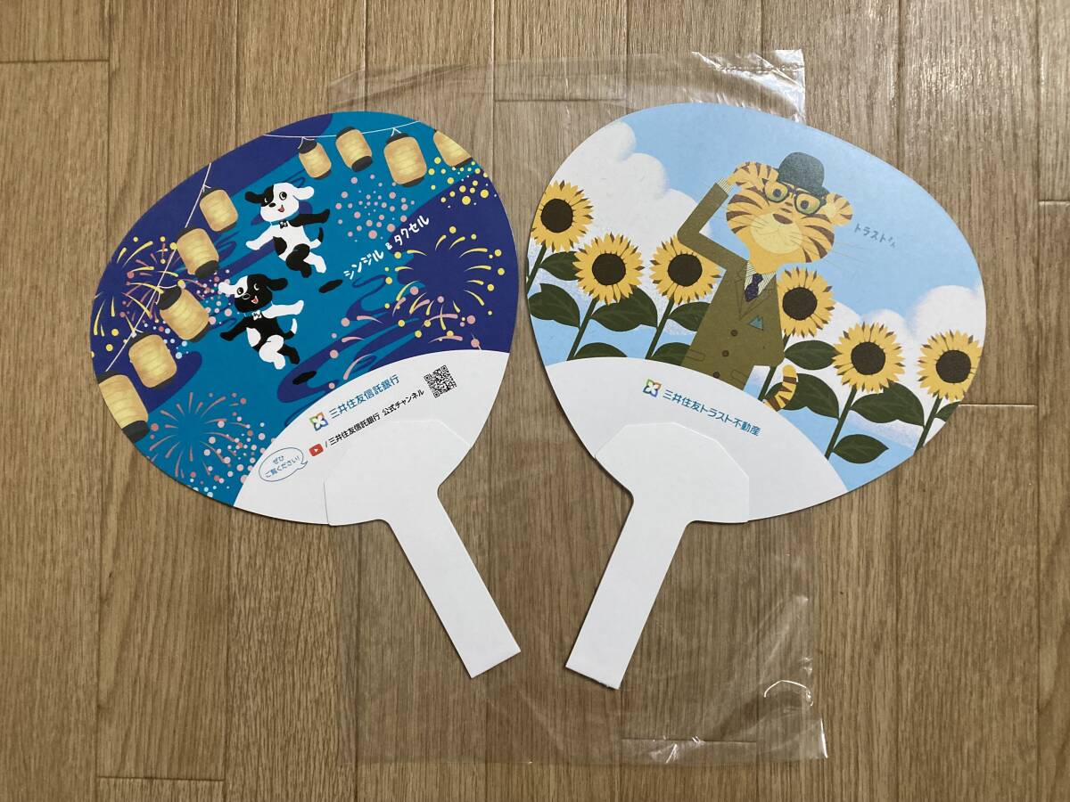 銀行 うちわ 2枚セット シンジル&タクセル 可愛い犬 虎 デザイン 2枚は同デザイン 紙製