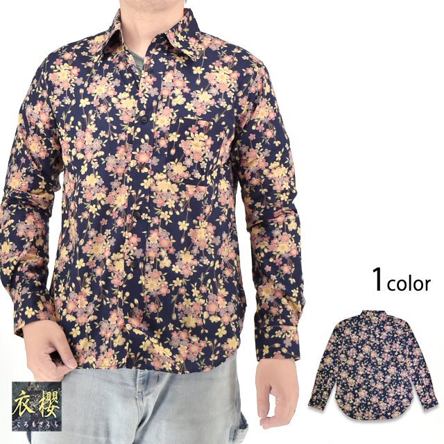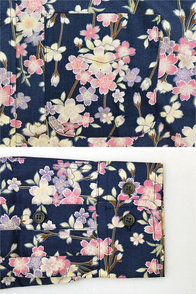 | 抜染調長袖レギュラーカラーシャツ「枝垂桜」◆衣櫻 KSK-M09702 | |||||||||||||||||||||||||