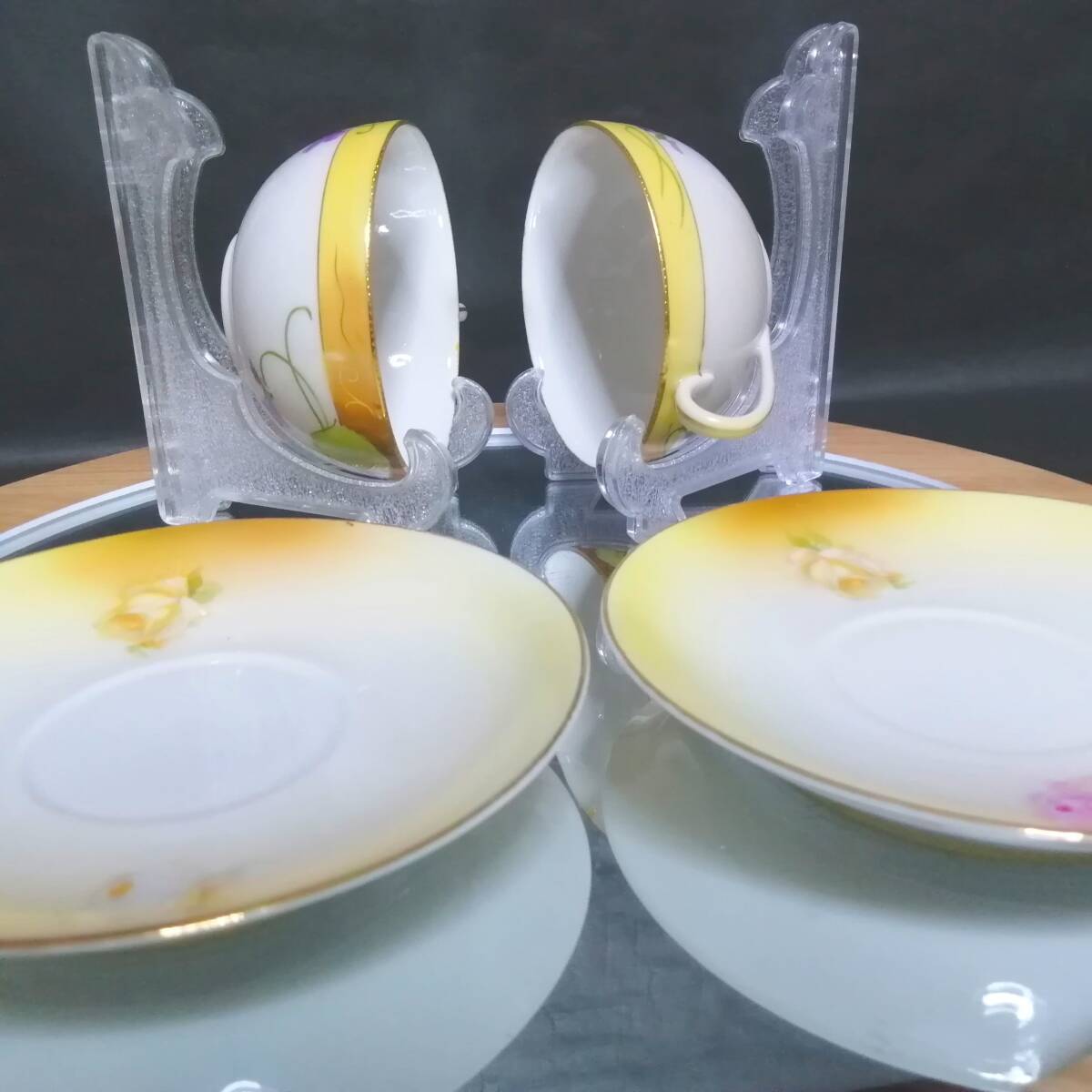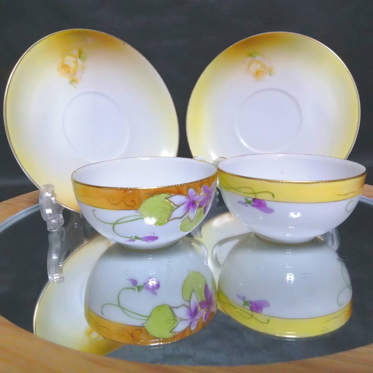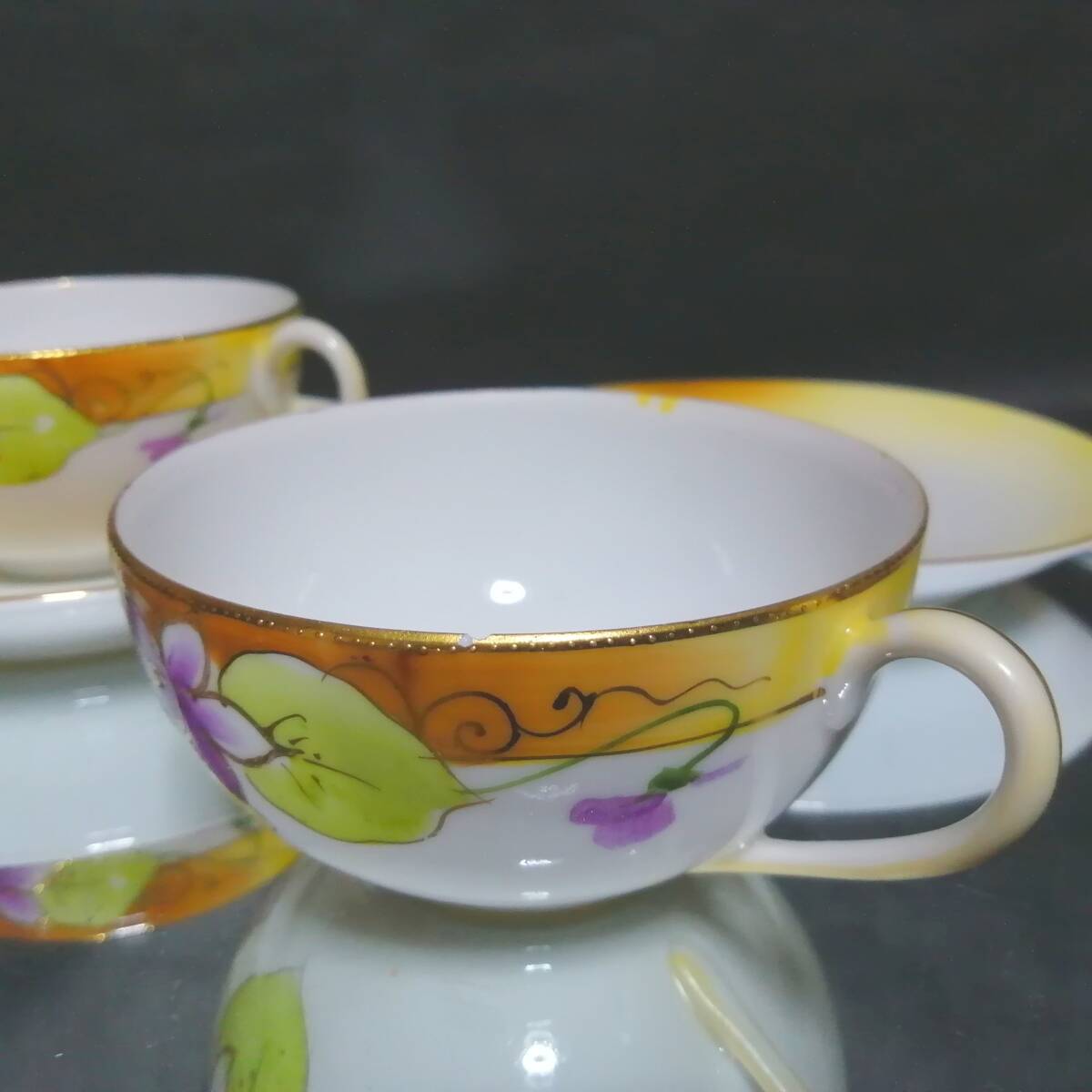 数多くの出品物より当ページを訪問頂き、感謝申し上げます。 画像1枚目に掲載されているものをお届けします! ※お皿立て等の備品除く 趣味で集めておりますが、保管場所が限界を超えたため、 大切に使って下さる方の元で、第2の人生を歩んでほしいと思い出品します。 ーサイズー(小数点は四捨五入) カップの直径 9CM カップの高さ 5CM ソーサーの直径 14CM ーお品物の現状ー こちらは祖母から譲り受けたお品で 譲り受けた当初は気が付きませんでしたが、 よーく見るとカップとソーサーが一致しておりません。 片方はオールドニッポンでもう片方はドイツ製となります。 不思議なことにセットにして遠目から見ると 違和感がないのでそのまま保管しておりました。 ペアですが、片方はカップに欠け、ソーサーにヒビがあります。 もう片方はアンティーク品質という前提で、 目立った傷はありません。 発送方法は発送方法欄をご覧ください。 リサイクル梱包材で梱包の上、割れないようご用意します。 ご入金後に準備開始します、約3日間頂戴しておりますが、 ※まれに発送お休みする期間があります、自己紹介文をご確認ください。 | ||||||