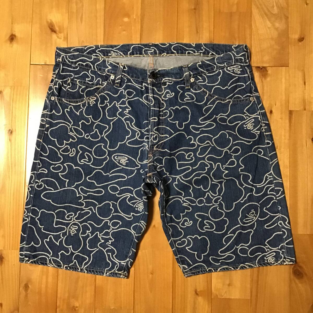 a bathing ape NEON CAMO デニムハーフパンツ XLサイズ です★