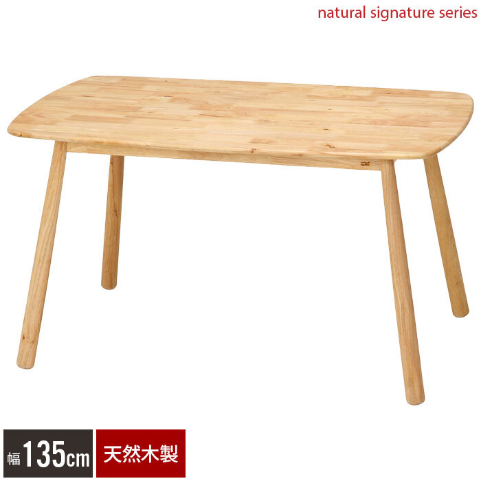 特長的なデザインの脚がポイントのダイニングテーブル。 幅広い年齢層から好まれるナチュラルテイスト。 温かみ溢れる天然木を使用。 使うほどに味わいが増していく天然素材は愛着の沸く存在になります。 天板はラッカー塗装で仕上げ、さらっとした肌触りで自然な風合いを感じられます。 面取り加工が施されているので、小さなお子様がいるご家庭でも安心してお使いいただけます。 脚部と床との接地面の先端は丸く加工し、床を傷つけにくい処理をしています。 |