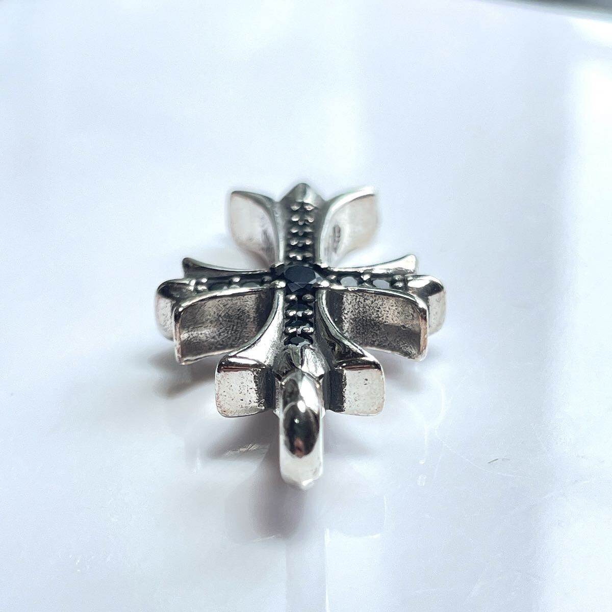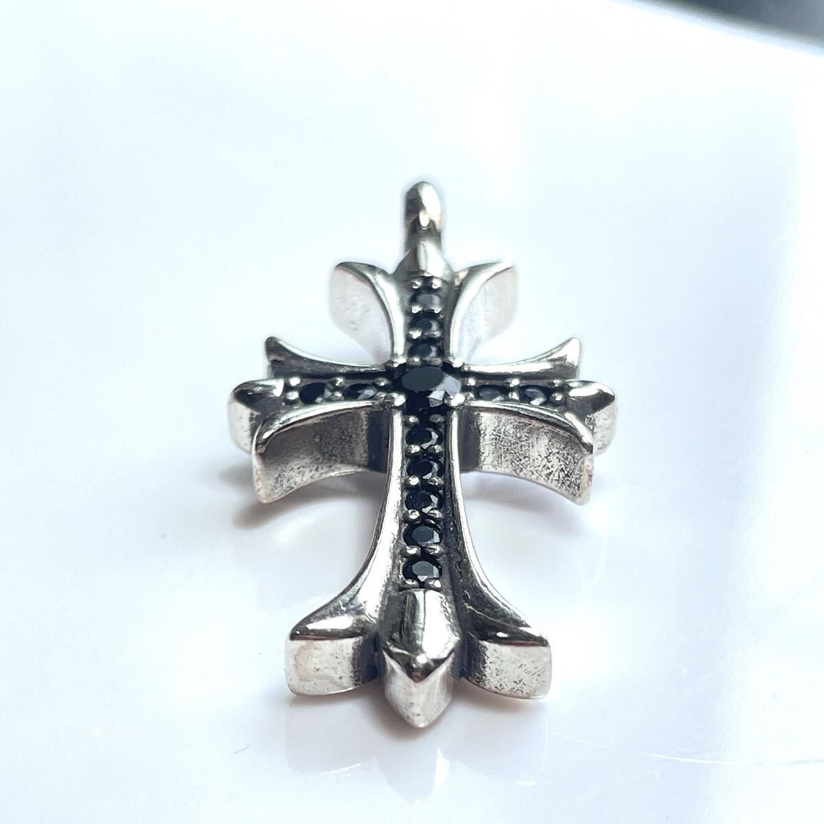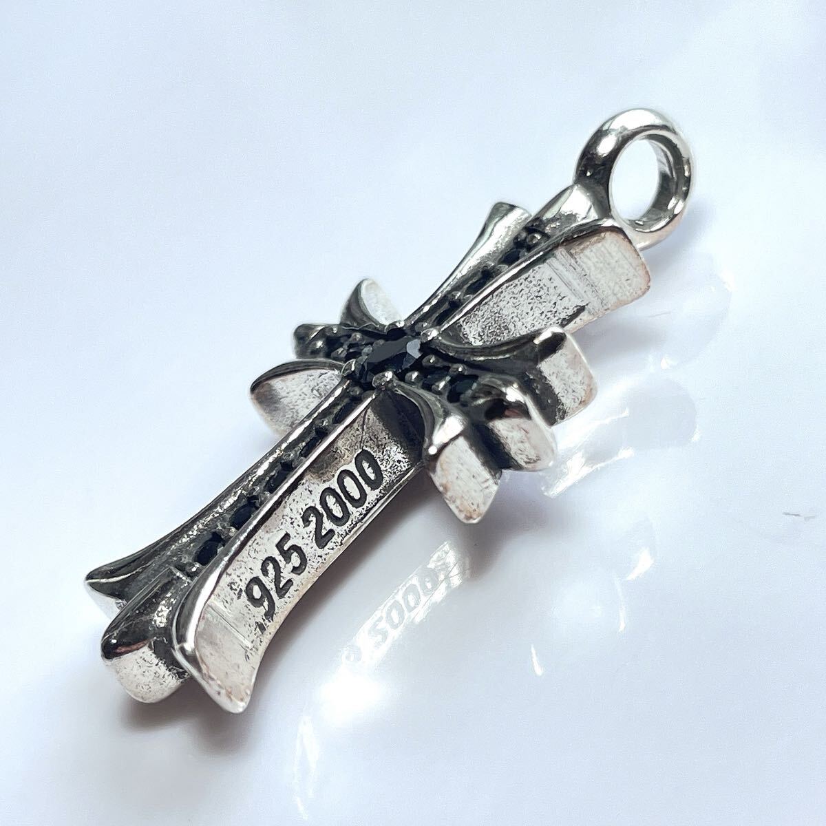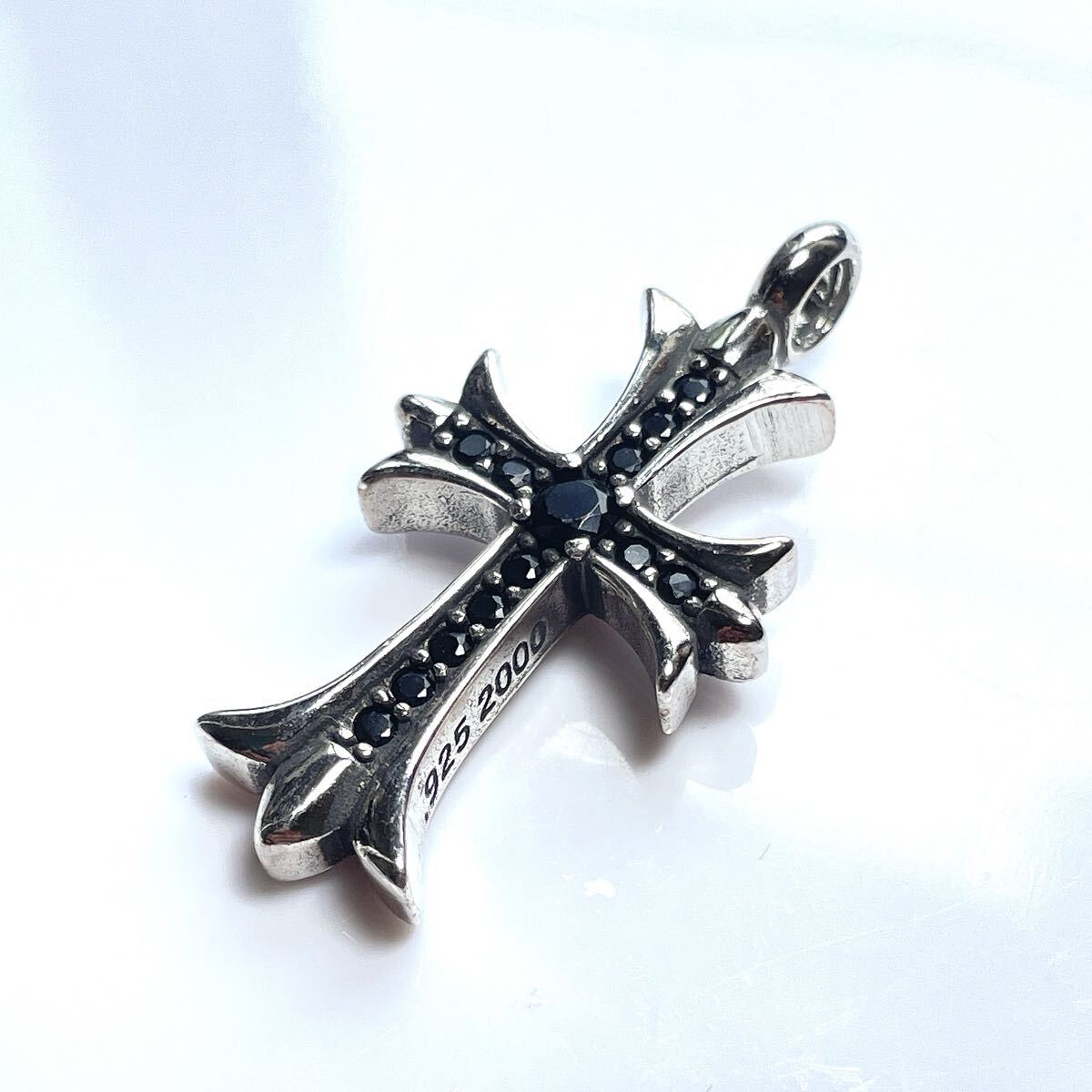 【ペンダント】 タイニークロス ベビーファット ブラック パヴェ silver925 刻印入り