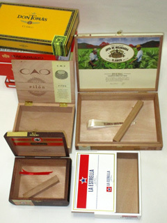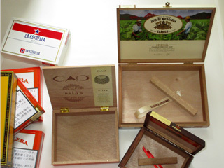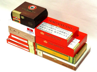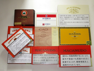「JOYA DE NICARAGUA」「MACANUDO」「LA ESTRELLA」「CAO pilon」「DONTOMAS」「TABACALERA」などのシガーブランド空き箱です。