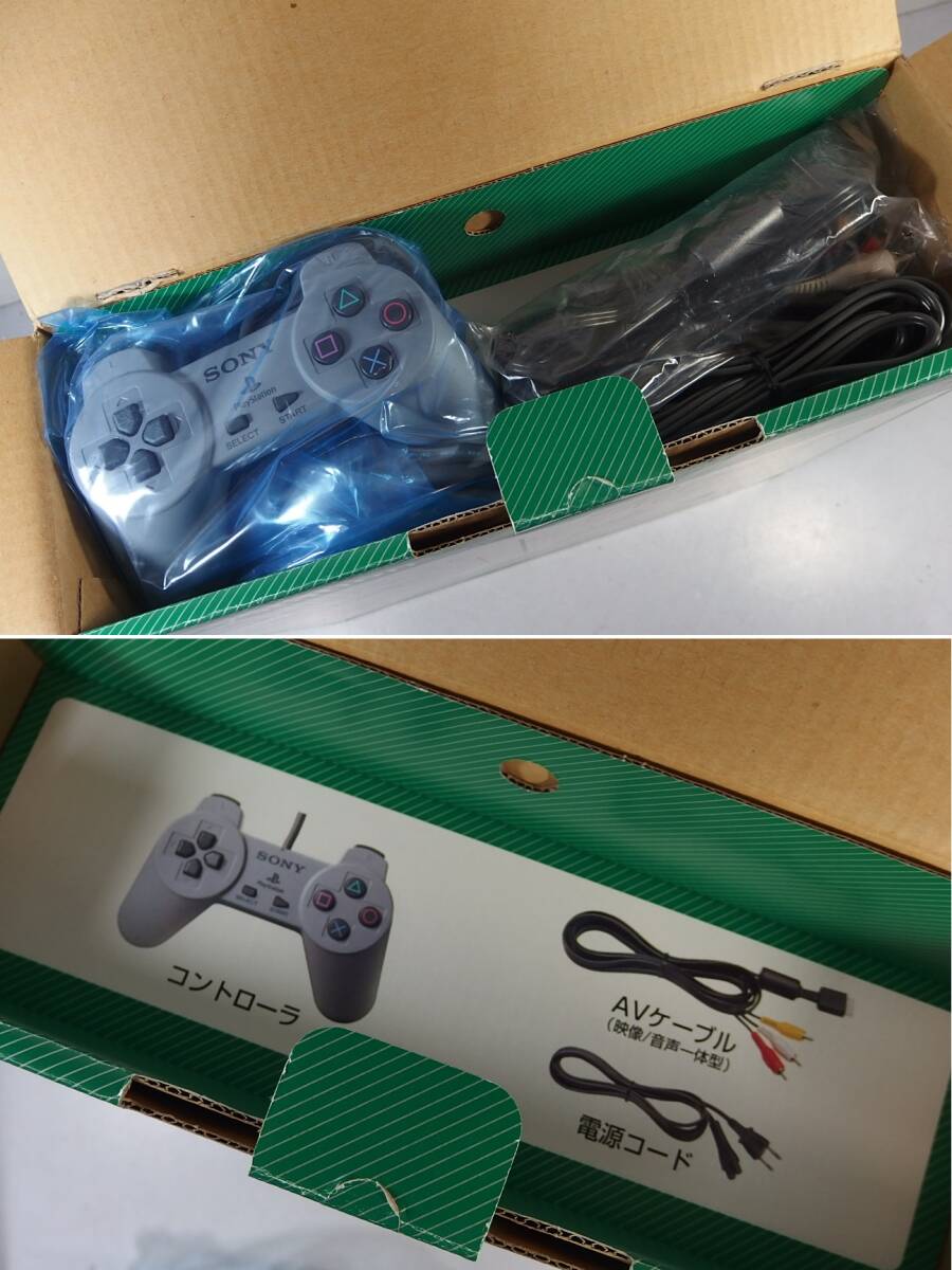 | ■コメント SONY(ソニー) 初代 PS プレイステーション 本体 SCPH-5500 PlayStation PS1 プレステ1 プレステワン プレイステーション1 希少未使用(付属完備)になります。 ご存じ伝説のハード、PlayStation(プレイステーション、略称: PS, PS1)です。ソニー・コンピュータエンタテインメント(略: SCE)が1994年12月3日に発売した家庭用ゲーム機。家庭で本格的なテクスチャ付き3Dグラフィックを実現した初めてのゲーム機。また、据え置き型としては初めて累計出荷台数が1億台を突破した家庭用ゲーム機。こちらの5500番はシリーズ内で初めて「PU-20」基板を使用し、メインメモリの変更やGPUなどがバージョンアップもあり画質と処理能力が向上。発熱も殆どないモデル。CD-ROMドライブの読み取り部分の改良設計もされており、縦置き術などの努力が不要。現在では希少な未使用となりますので、この出品に是非! ※当方の出品物をご覧頂き大変感謝です!この品の他にも類似品・関連品・1点物・人気の品・新品・未使用・希少品・廃版品・高額品・隠れたお宝などを1,000円~同じくヤフオクで多数出品しております。こちらの品以外以上に欲しい物、驚きの物が1,000円で見つかるかも!!お時間や興味ありましたら是非覗いてみてください(こちらをクリックやタップ⇒)他のヤフオク出品物(ヤフオクHP内) ■状態 前オーナー様(ゲームコレクター様)が所有していた未使用品です。肉眼で確認できる目立つ経年劣化や保管劣化は、ほぼ皆無に近いです。保護シールも付いており、付属もコントローラー(未開封)をはじめ大半が未使用や未開封で完備。シリアル、本体と箱のラベル一致。 ※リユース品、サンプル品やレンタル品やレンタル落ち品、海外品、コピー品ではなく日本版正規販売品(外資メーカー正規輸入品含(画像.JAN等参照))です。 ※本体のみならず付属(バッテリー付属の品のバッテリー自然劣化含)や箱やパッケージを含む全ての詳細状態記載や画像掲載はできない、しない場合がございます。尚、画像掲載や記載ないものも悪意ある物ではなく、記載掲載の有無や程度(個所数や個数等も含)に関係なく外観でのクレームはご遠慮下さい。新品や未使用や展示品も保管劣化、展示劣化の主観違い・見落としもある場合がございます。ホコリ付着や手あか、傷、スレ跡、画面や端子やボタンや溝への劣化も同様でございます。使用に支障はございませんので、ご容赦・ご理解お願い致します。 ※未使用(未開封や予めの完全未使用記載を除く)の電化製品ですが、ショップ等で電源不良や液晶不良がないかの確認の為に1度通電のみさせている場合が稀にございます。予めご了承下さい。 ※ご案内・ご注意を参照(下の青いタグ内①) ■保証 未使用なので、何かございましたら近隣量販店や製造元・メーカーにお問い合わせ下さい。 ※未使用状態を保つために当方では動作確認や状態確認はしておらず付属(バッテリーや充電池、乾電池含)他も含めて保証なしとなります。受け取り後に文章を確認していないとの事でのクレームや返品もご遠慮頂くようお願い致します。 ※上記状態で記載させて頂いたように、保管劣化や展示劣化での外観クレームも記載の有無関係なく対応できません。予めご了承ください。 ※未使用とはいえ、稀に初期不良や他の原因で故障している場合もございます。その際も当方では対応しかねます。万が一はご自身での修理(可能かの保証も無)や部品取用、付属活用、他での対応や用途でお願い致します。 ※ご案内・ご注意を参照(下の青いタグ内①) ■お支払い方法 ヤフーかんたん決済(落札代金+送料) ※ご案内・ご注意を参照(下の青いタグ内②) ※支払の手順を確認=ヤフオクHP ■配送方法 ヤフネコ(宅配)かネコポスか郵便関連類(選択可能な物のみ) ※ご案内・ご注意を参照(下の青いタグ内③) ■特徴・スペック・仕様 詳細=メーカーHP JANコード:4948872055000 1996年11月15日発売 CPUコア:MIPS R3000A ベース 32 ビットRISCプロセッサ(R3051) 動作周波数:33.8688MHz ベクトル演算コプロセッサ:GTE(Geometric Transfer Engine)2 伸張エンジン:MDEC GPU ・最大 1677 万色(24 ビット) ・レンダリング解像度/最大解像度:256 × 224 to 640 × 480 ・VRAM:1メガバイト サウンドチップ:SPU ・16bit ADPCM ・サンプリング周波数:最大44.1kHz ・同時発音数:2.0chステレオ 24チャンネル ・リニアPCM2.0chステレオ出力(音楽CD再生時のみ) ・メモリ:512キロバイト メインメモリ:EDO DRAM 2メガバイト 表示画素数:256ドット×224ライン(ノンインターレース) 色:最大1677万色 表示画面:1面 メディア:倍速CD-ROMドライブ CD-DA、CD-XA再生可能 外部コネクタ:コントローラ×2、メモリーカード×2、AVマルチ(RGB / S端子 / ビデオ)、S端子、映像・音声端子(RCA) 、通信(シリアル)、外部拡張(パラレル)、電源入力(AC)、DC出力 ※後面の端子は型番により、搭載する端子が異なります。 外形寸法(幅×高さ×奥行き):270mm×60mm×188mm 重さ:1.4kg 付属品:コントローラー、AVケーブル、電源コード、印刷物一式 ※商品名・商品説明・特徴・仕様の一部には、A