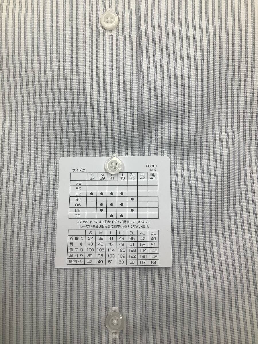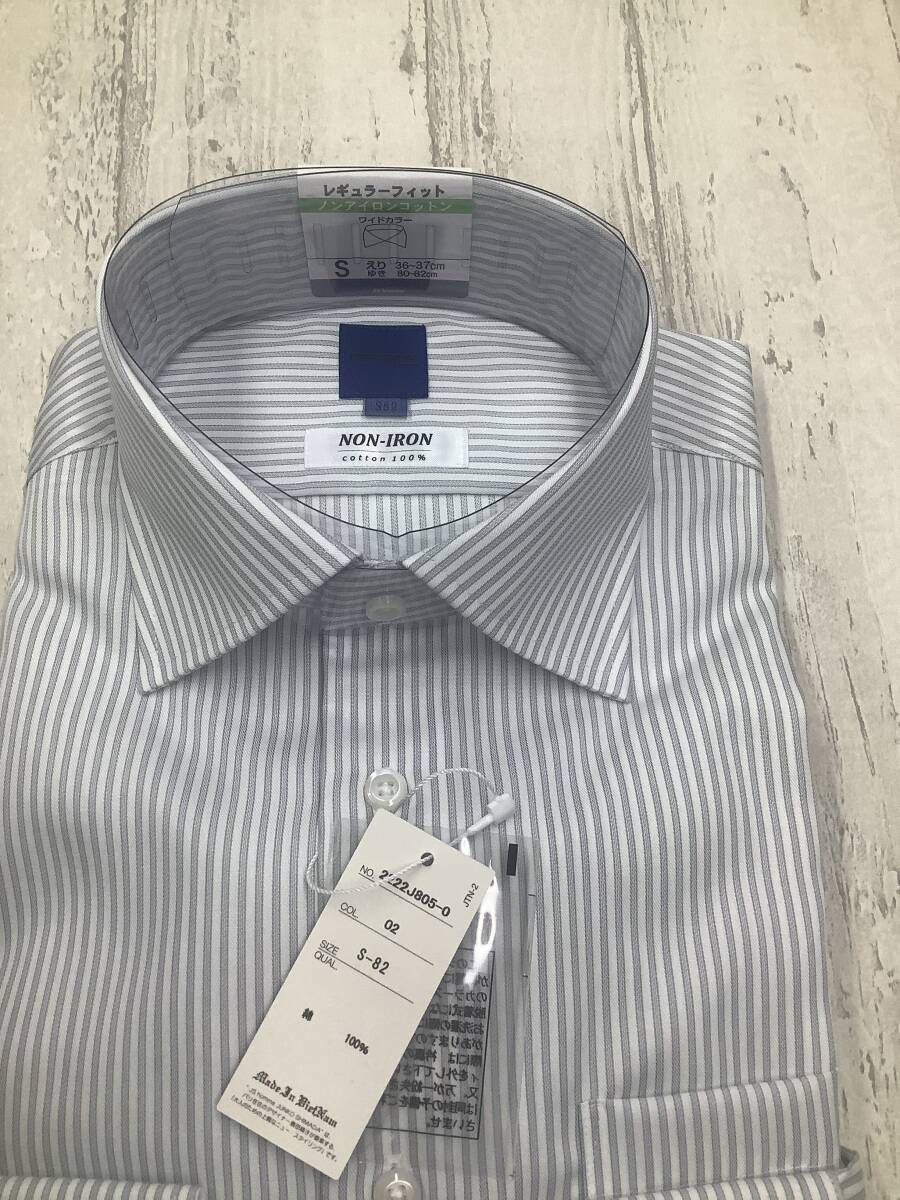 ★新品 ワイドカラー★エレガントなシャツ★ 37-82 Sサイズ ★淡いグレー色ラインストライプ生地 ドレスシャツ ノンアイロン