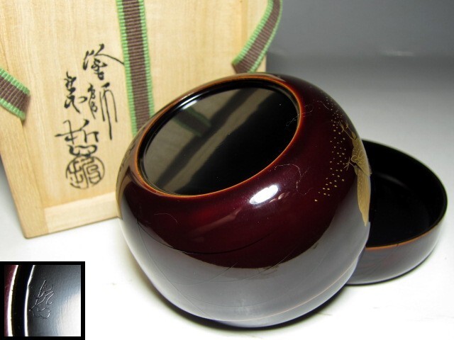 千家十職 塗師 中村宗哲 鶉絵平棗 裏千家十五代 鵬雲斎花押    e821